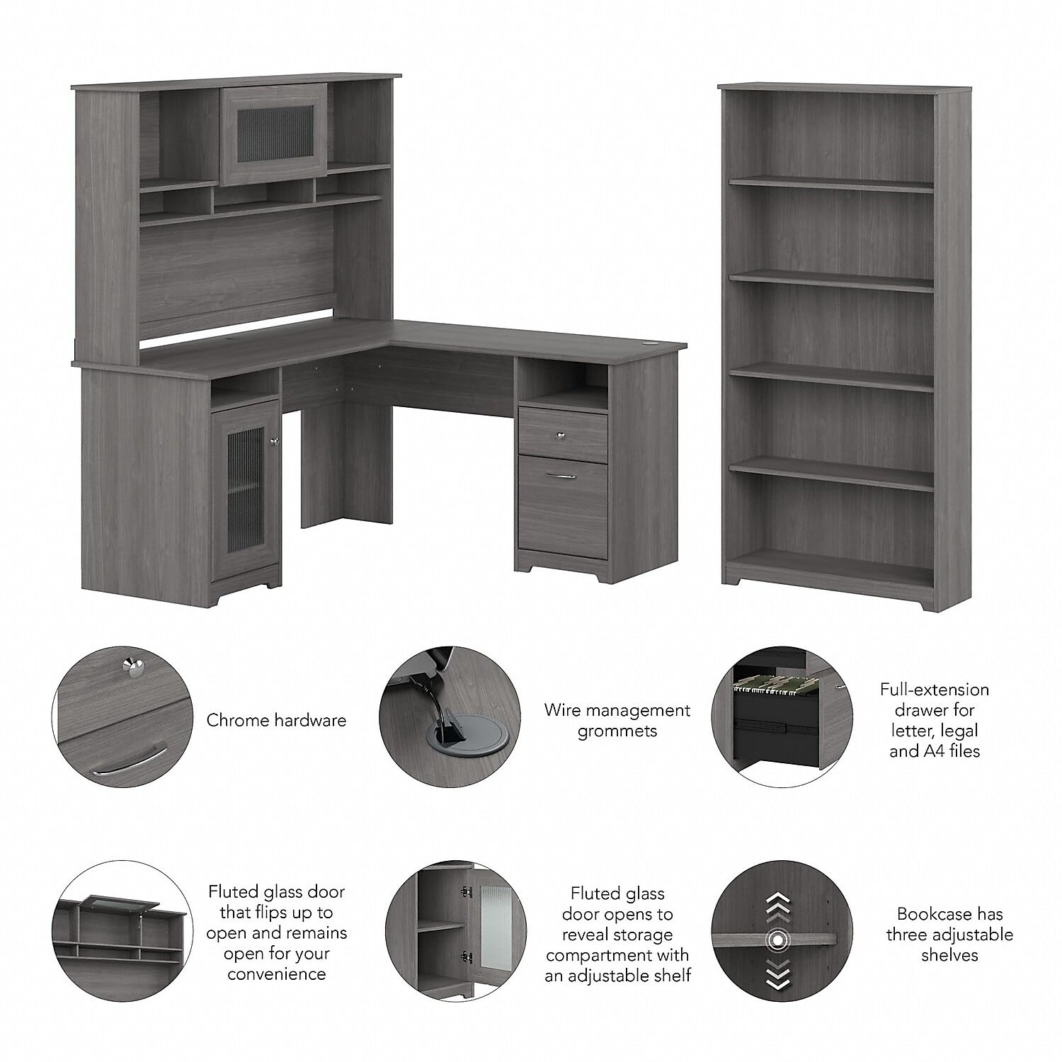 Bush Furniture Cabot 60W L Shaped Computer Desk with Hutch & 5 Shelf Bookcase in Modern Gray