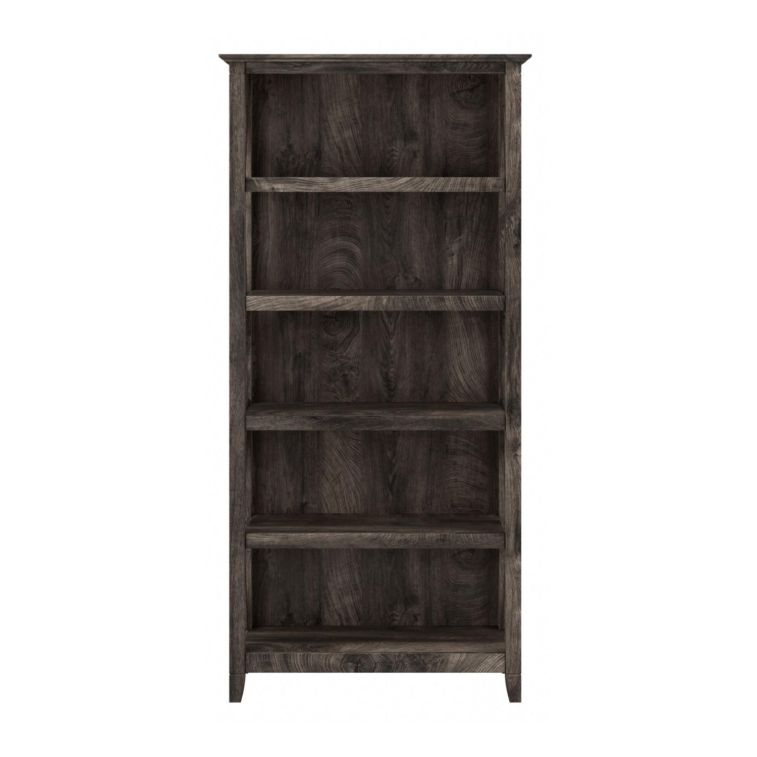 Bush Furniture Tall 5 Shelf Bookcase for Living Room or Home Office, Large Bookshelf, Modern Farmhouse Style, Key West Collection, Dark Gray Hickory