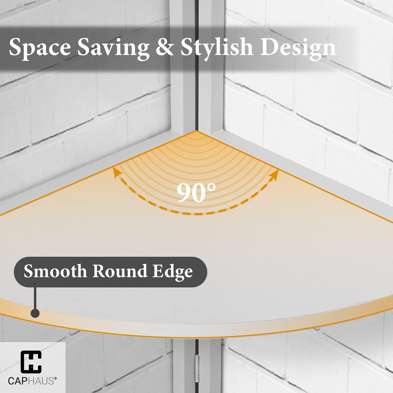 CAPHAUS Tall Corner Shelf Stand, 5-Tier Display Shelves, Ladder Corner Wood Storage Plant Bookshelf with Metal Frame, Versatile Shelving Unit Bookcase for Home Office Space, White
