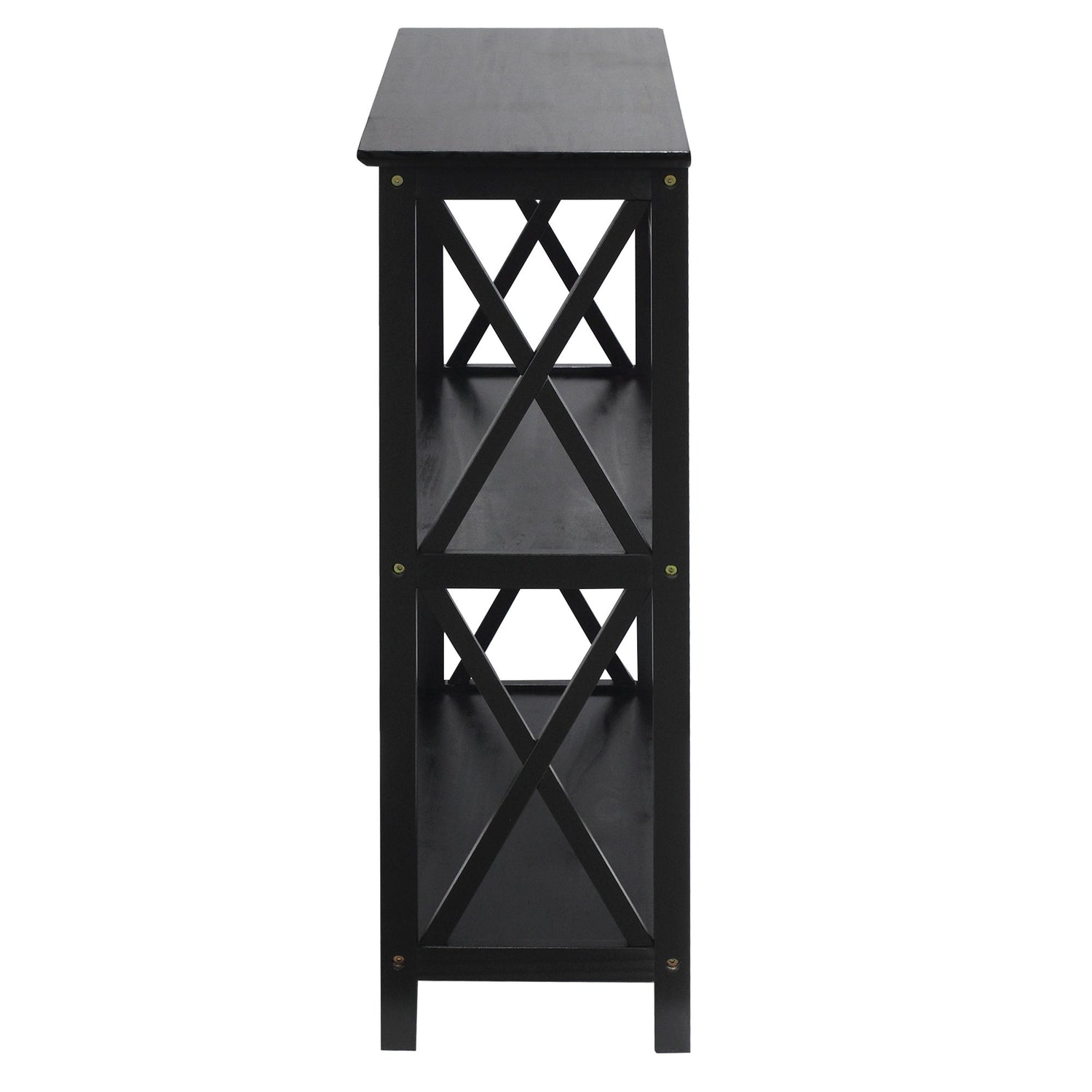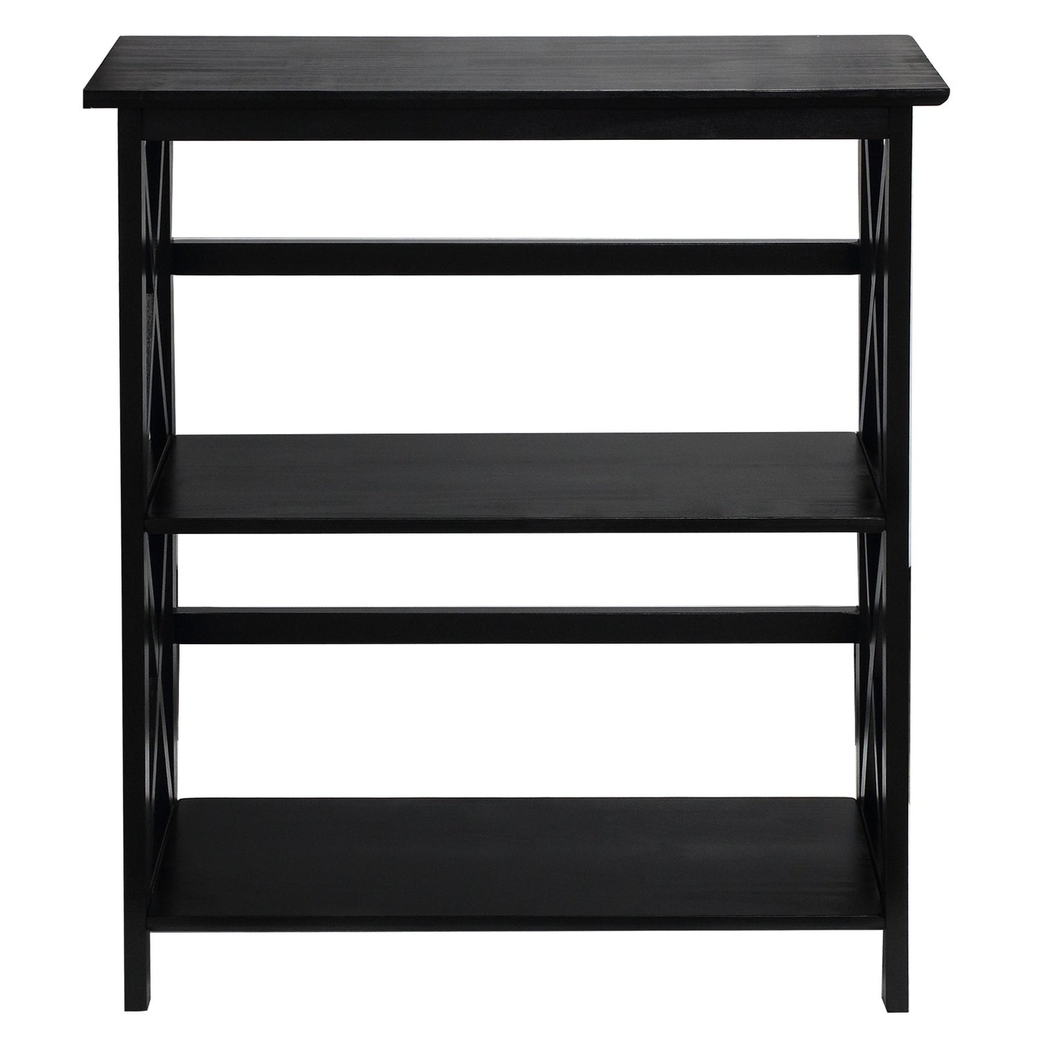 Details: Storage with ease, this Montego X-Design Style Bookcase is constructed with solid wood for lasting use. 3 shelves provide ample storage space. Thorough finish gives this bookcase a strong, contemporary appearance. Perfect for home storage and decor.