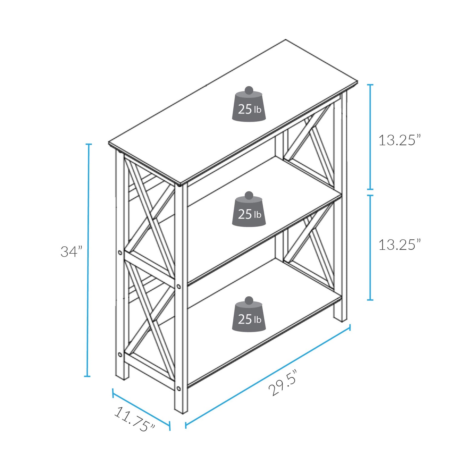 - Dimensions: 34 inches high x 29.50 inches wide x 11.75 inches deep: Weight: 20.75 pounds