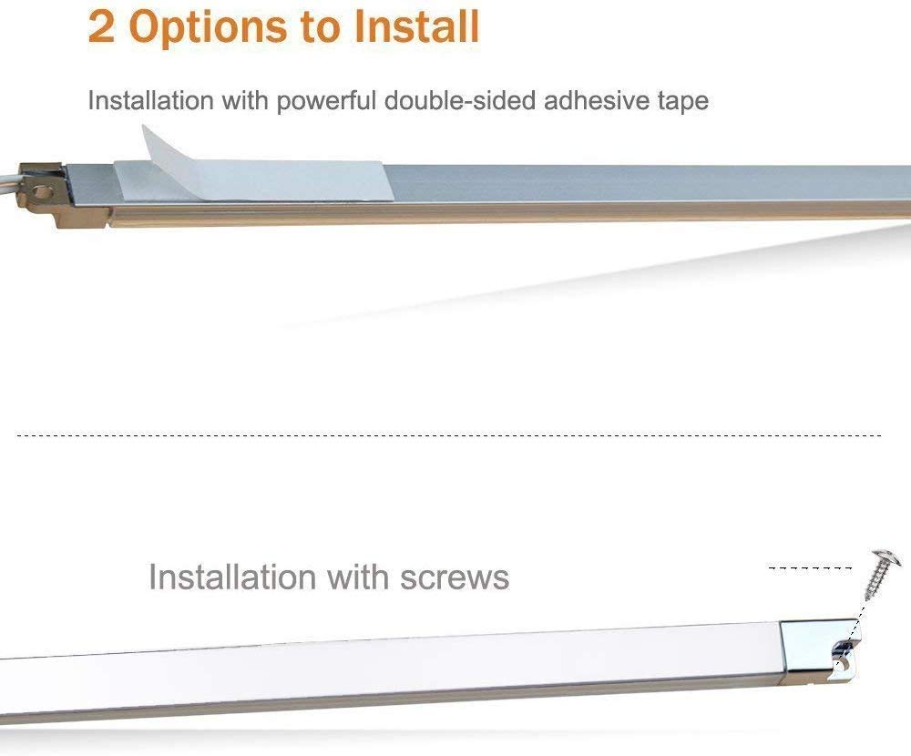 - With adhesive tape on the back and screws for easy installation,suitable for fitting to all types of under cabinet, book shelves and kitchen cupboards.