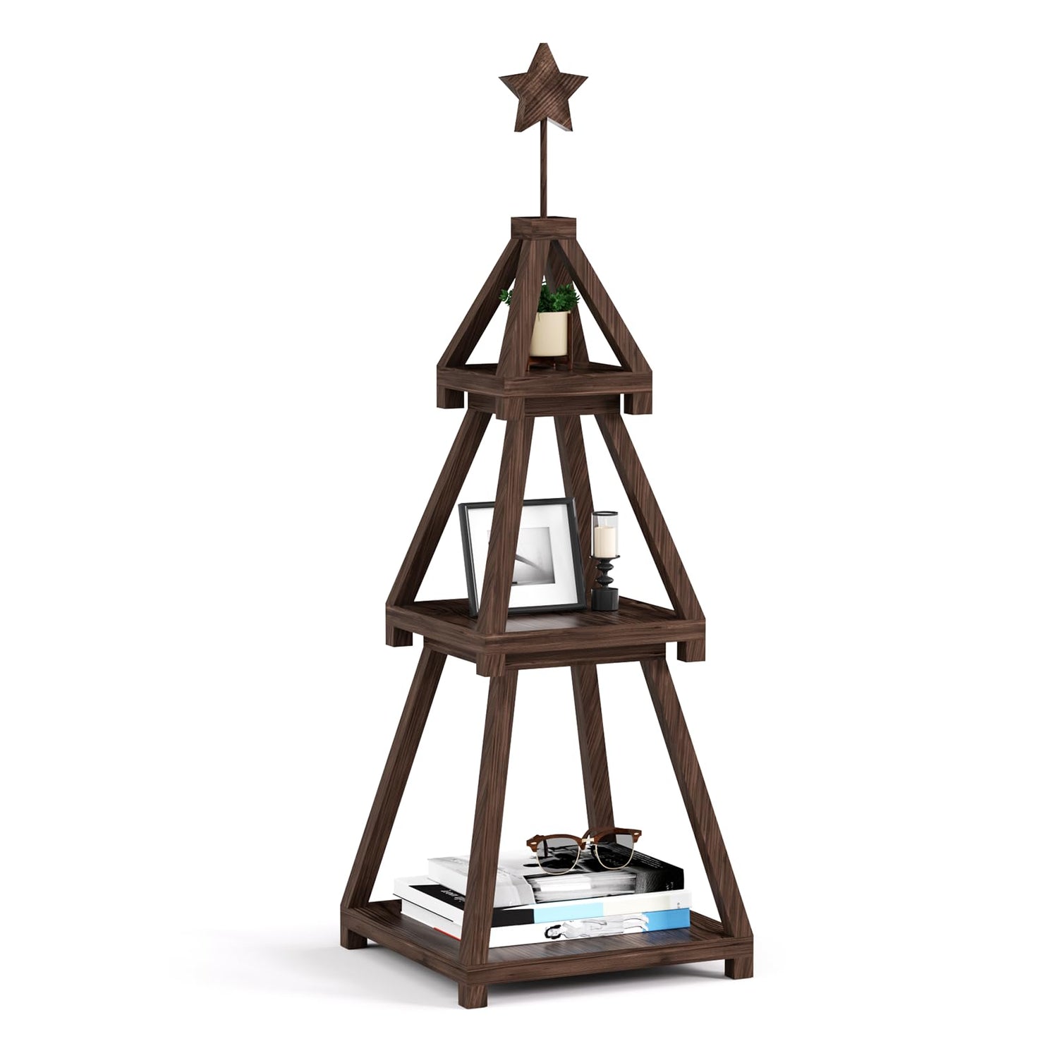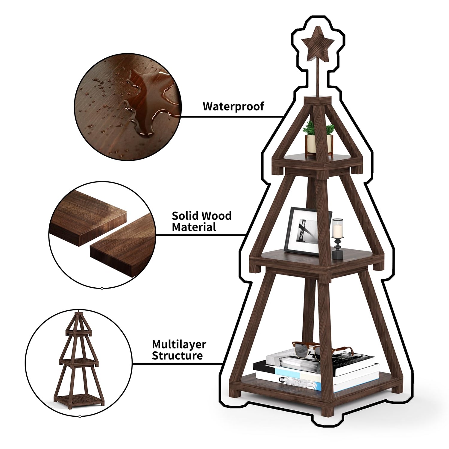 Cotata 41.3 inch 3-Tier Christmas Bookcase,Ladder Corner Solid Wood Tree Bookshelf for liveroom,Walnut