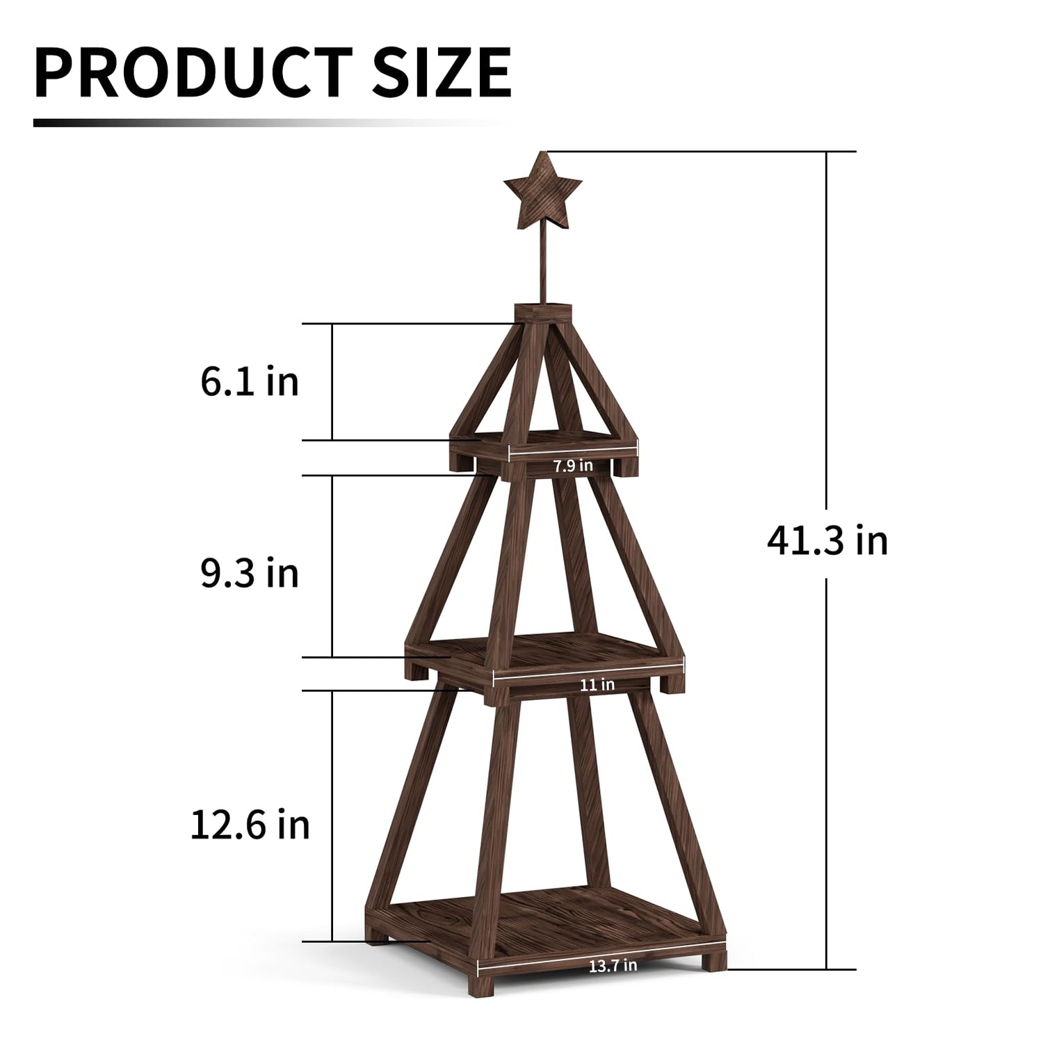 • 【Product Information】The shelf consists of 3 small tree shelves made of pine, with three 35mm screws and a five-pointed star shape ornament.This ladder shelf features great stability。