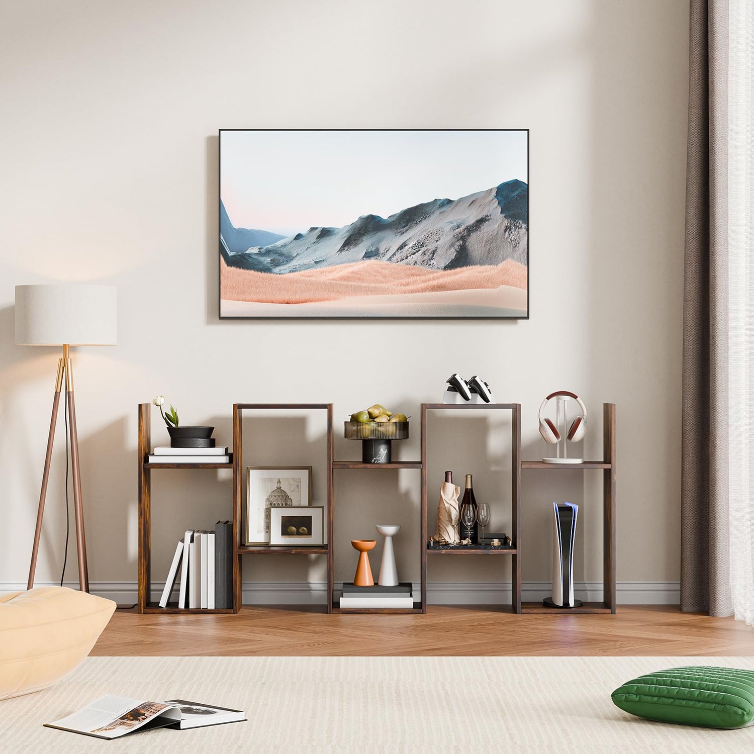 Cozy Castle Set of 2 Geometric Bookcase, S-Shaped Modern Bookshelf, Room Divider Bookshelf, 62" Tall Unique Abstract Bookcase with 5-Tier Display Shelf for Living Room Office, Rustic Brown