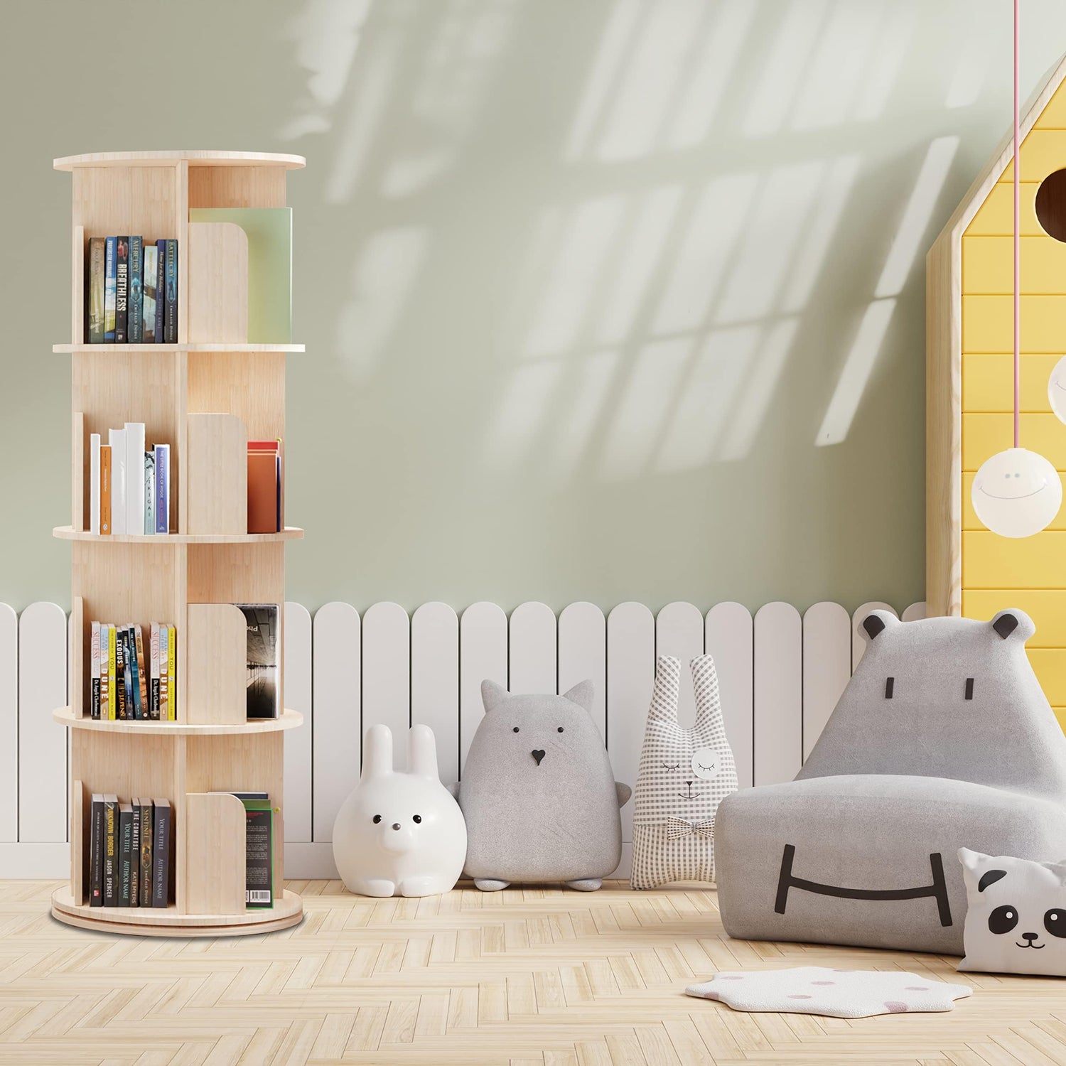 Cuguords 360 Display Rotating Bookshelf Tower, Spinning Bookshelf, 4 Tier Revolving Bookcase for Kids&Adults, Rotating Bookcase for Bedroom, Living Room,Solid Wood Bookshelf Organizer for Small Space