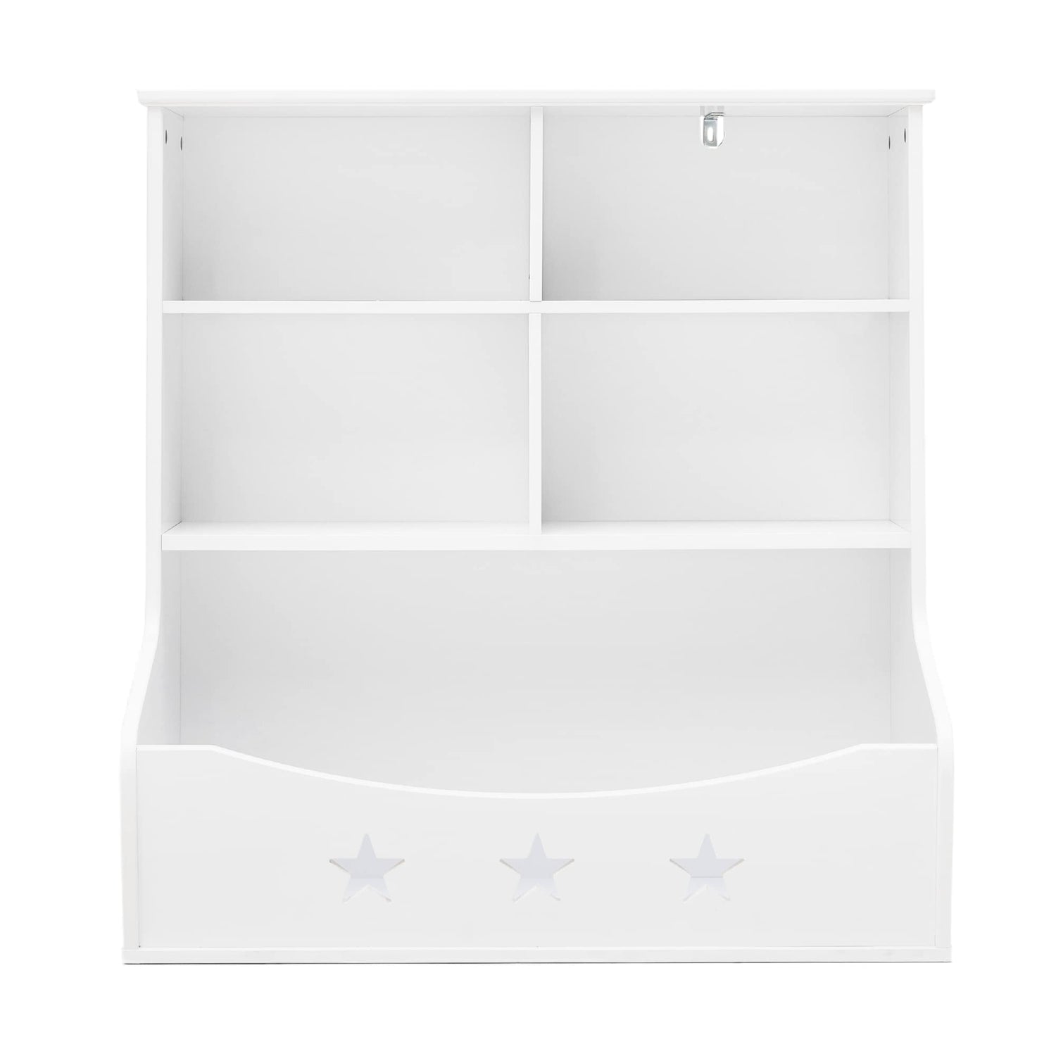 Introducing the Curipeer White 3-Shelf Kids Bookshelf with 5 Cube Units and Star Pattern Toy Organizer, the perfect addition to any playroom or nursery. This stylish and functional bookshelf not only brightens up your child's space with its clean white finish but also brings organization to their ever-growing collection of books and toys.