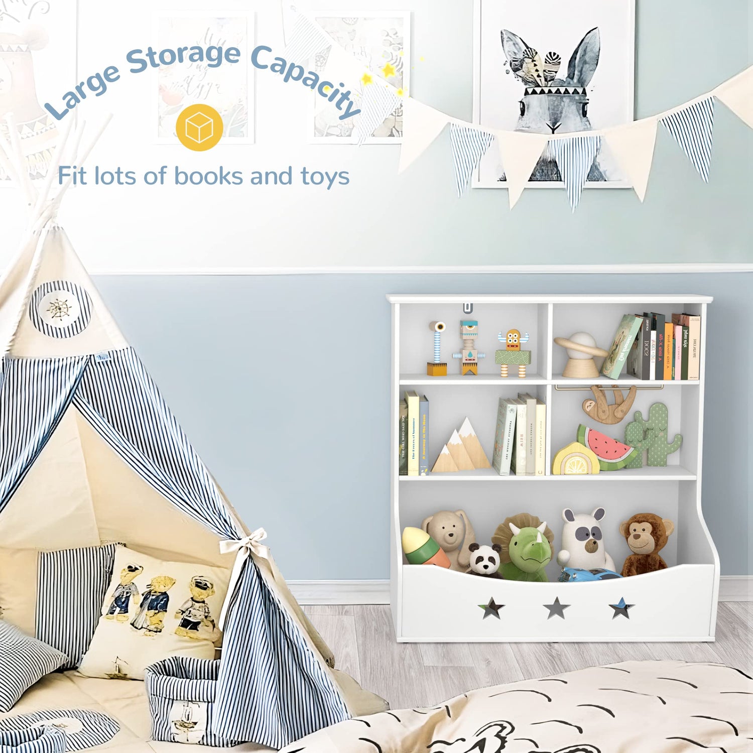 Curipeer White 3-Shelf Kids Bookshelf with 5 Cube Units and Star Pattern Toy Organizer for Playroom and Nursery
