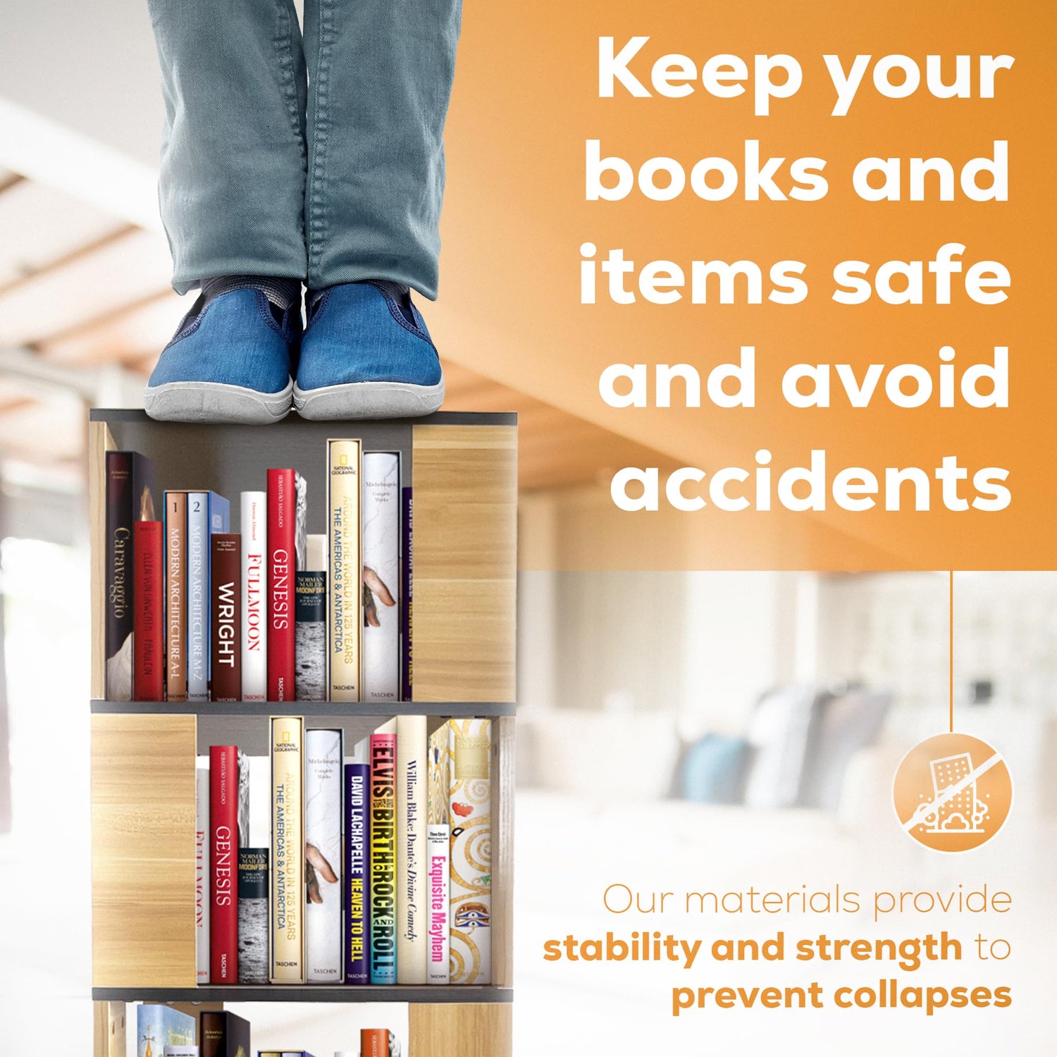 - β ππ¨π₯ππππ & π¦π§π¨π₯ππ¬ - Crafted from high-quality MDF wood with a thickness of 0.59 inches, this bookshelf is robust and stable, ensuring long-lasting durability and support for your books and decor. Ideal as book shelf rotating, 360 rotating bookshelf or 360 bookshelf.