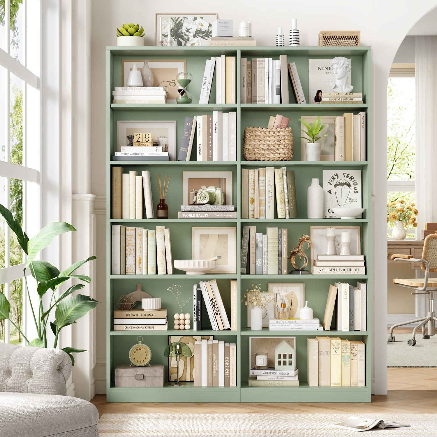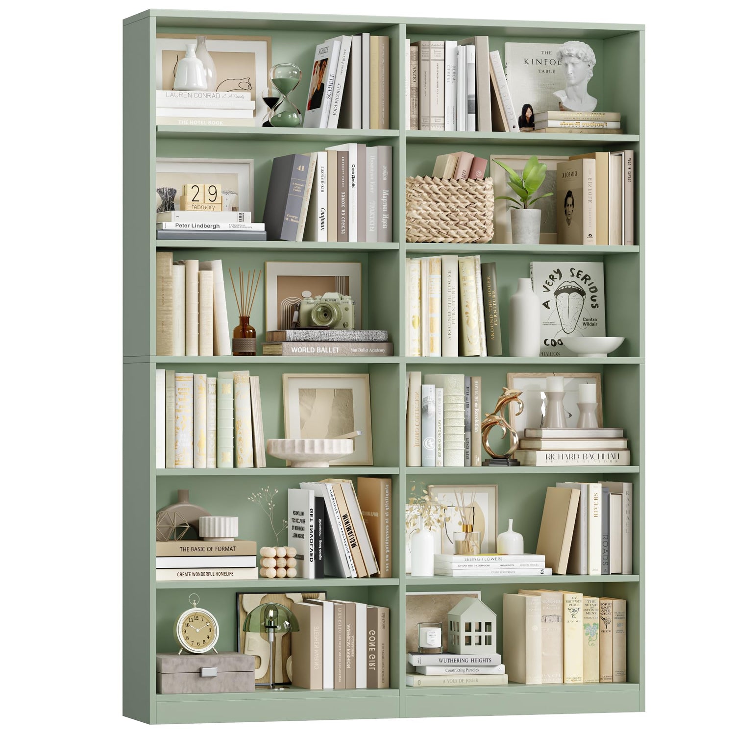 • 6-Tier Double Wide Bookshelf : This green bookshelf features extra-wide(47.2'') and thickened shelves to expand abundant storage space for all your books and keep your room tidy and organized.