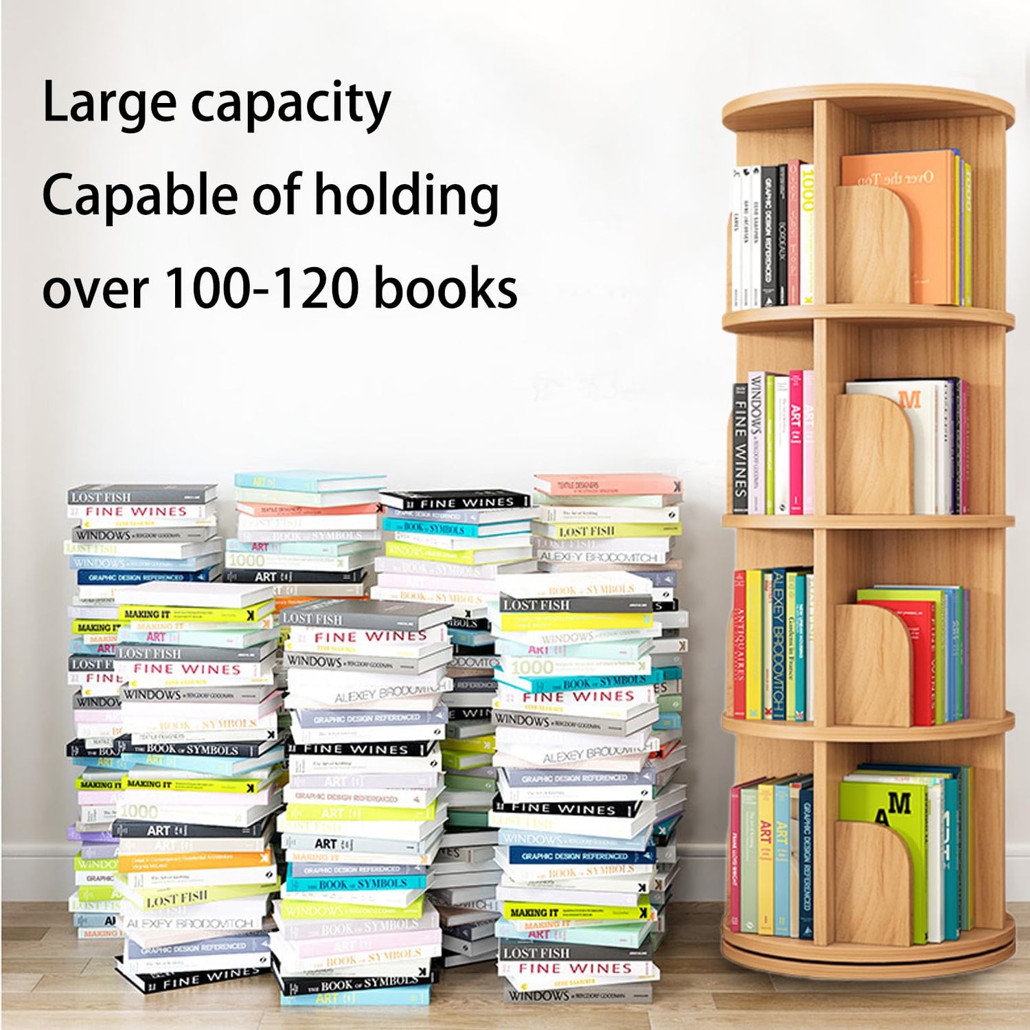 Feuusec 4-Tier Rotating Solid Wood Bookshelf Tower for Kids & Adults - Space-Saving Corner Display Bookcase