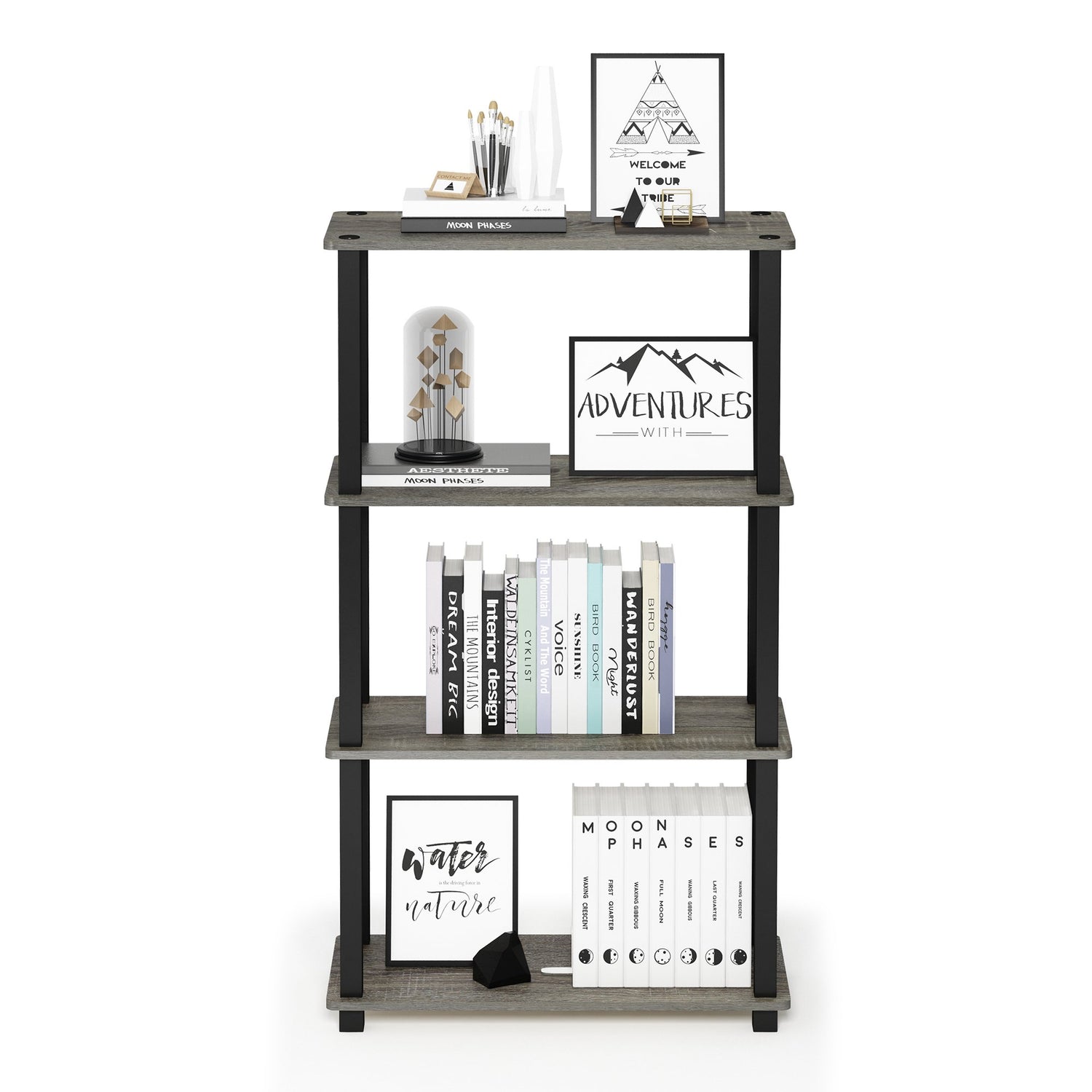 Furinno Turn-N-Tube 4-Tier Multipurpose Shelf Display Rack, Square Tube, French Oak Grey/Black