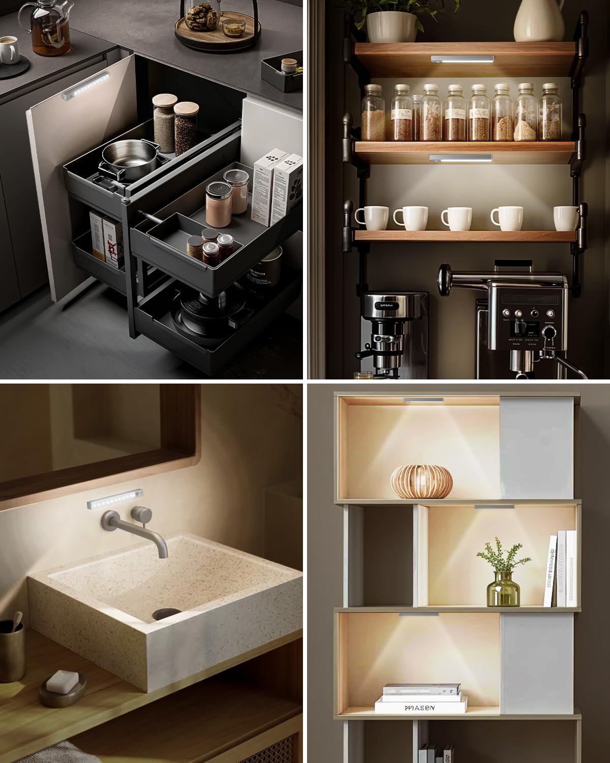 - 【Wide Application】-- These sensor lights indoor are not only suitable for any cabinets of kitchen, bedroom, bathroom, pantry, cupboards, wardrobes, shoe cabinets, laundry rooms, garages, you can also place them inside drawers, dark staircase, tool boxes, trailer etc. Surprisingly, they won't take up too much storage.