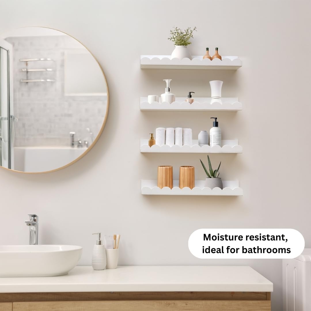 • Looks great in any room: These small floating shelves are perfect for more than just nurseries! The charming scalloped shelves design adds extra style to any home office, entryway, or living room as floating book shelves or picture ledges.
