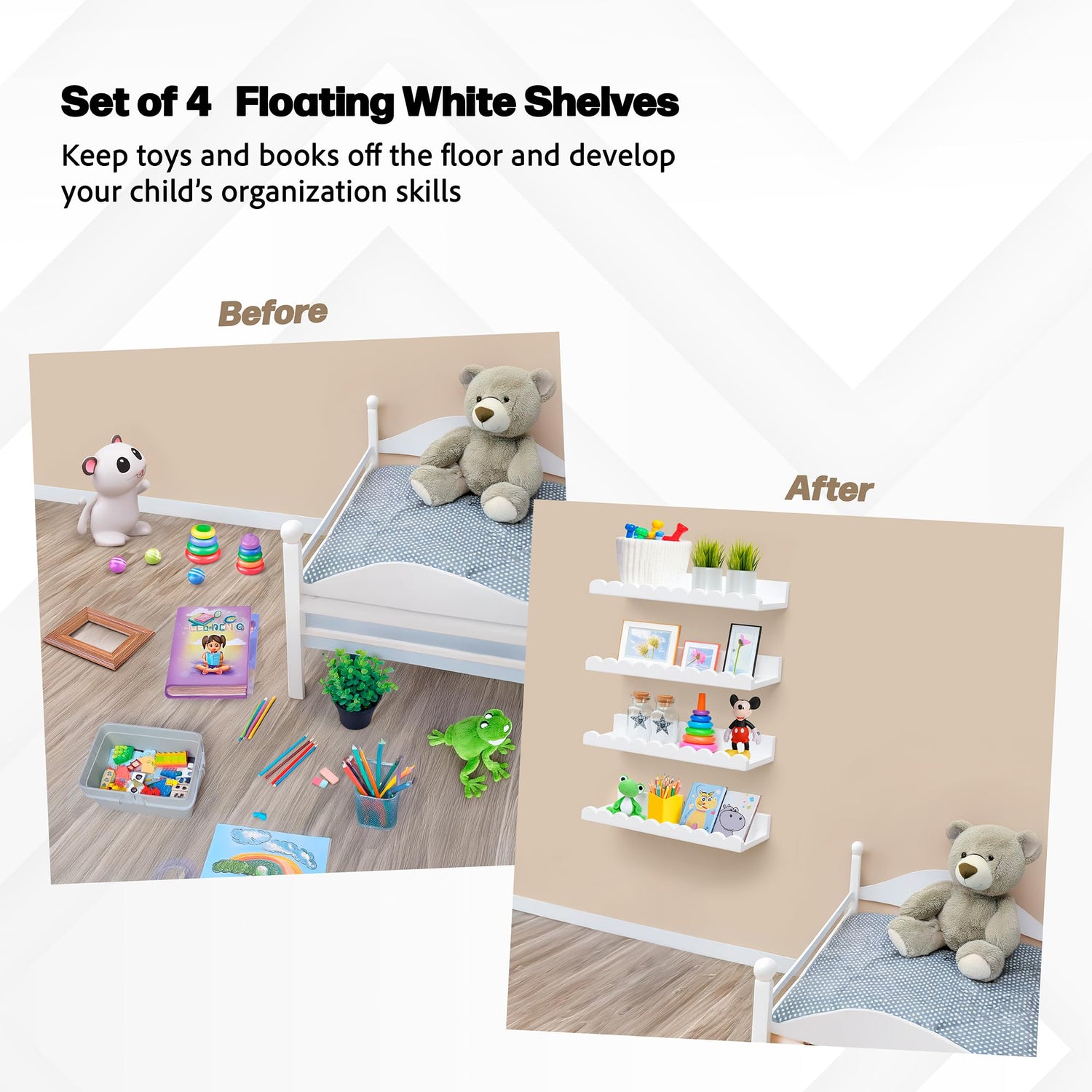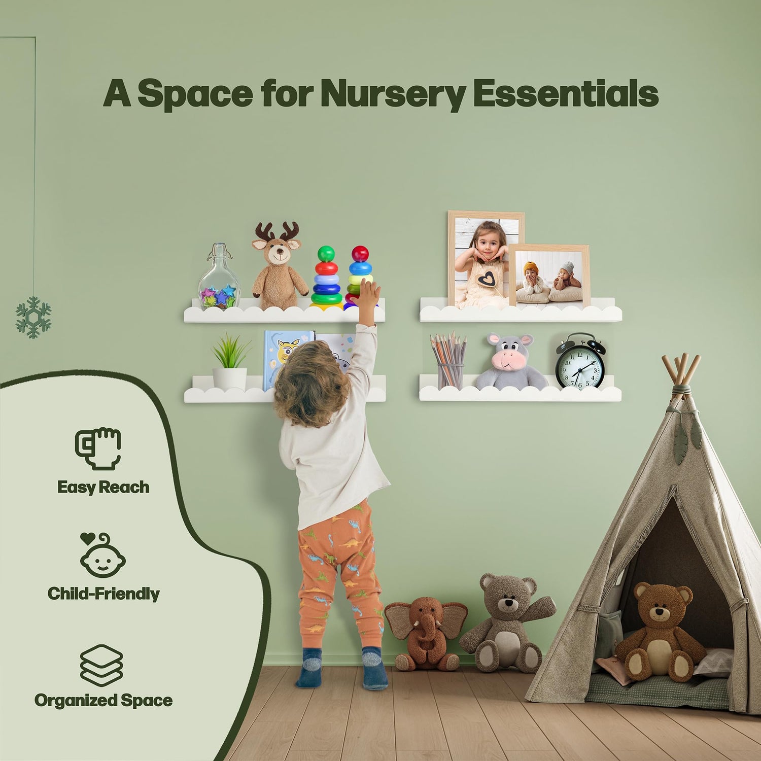 Green Goods Supply Scalloped Shelves - Set of 4 Pre-Assembled 15.6inch White Floating Nursery Book Shelves, Scalloped Book Shelf - Kids Wall Decor, Nursery Decor, Floating Shelves for Wall