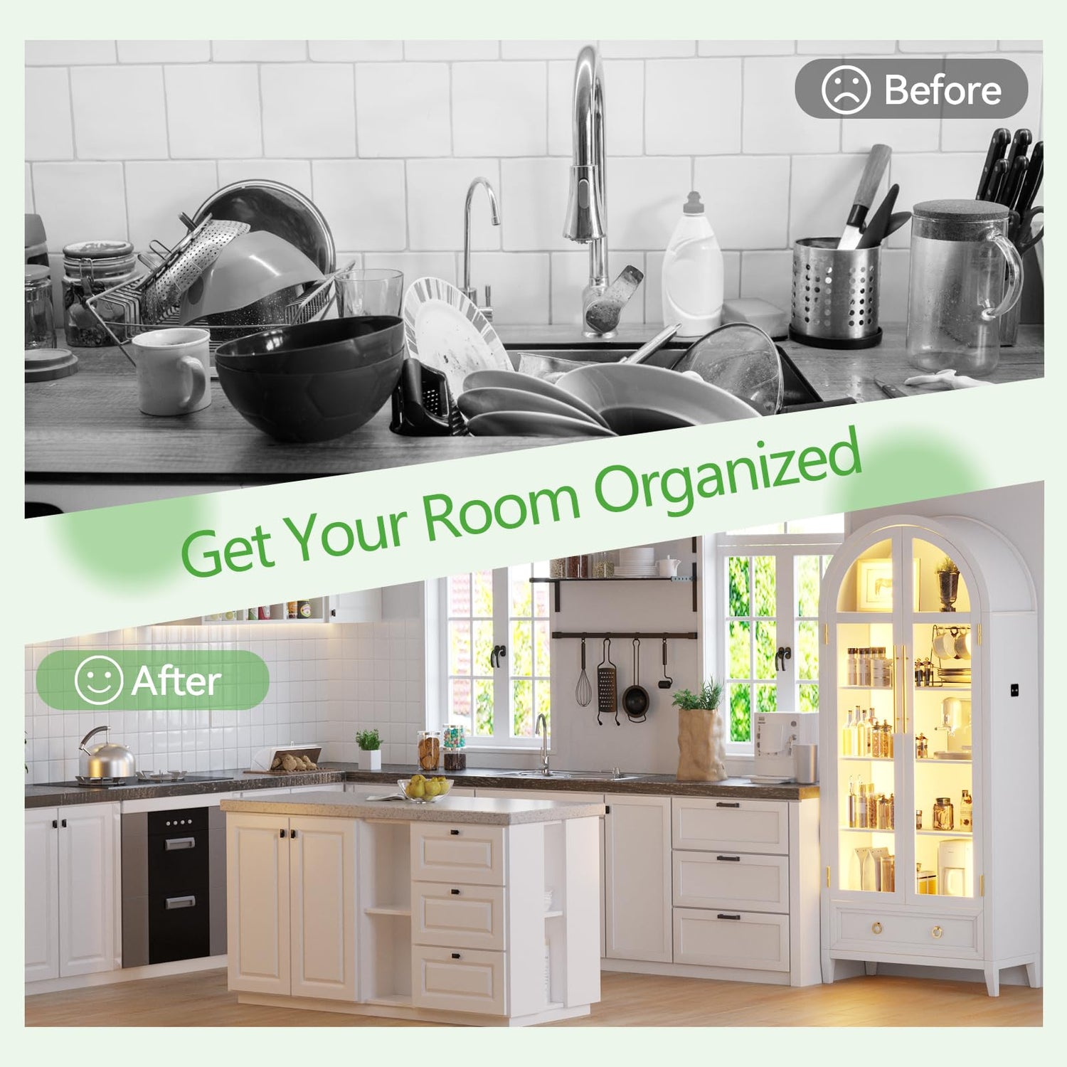 - 【Multiple Occasions】 Stylish and atmospheric arched bookcase cabinet can be placed in the living room, room, kitchen, office and other occasions