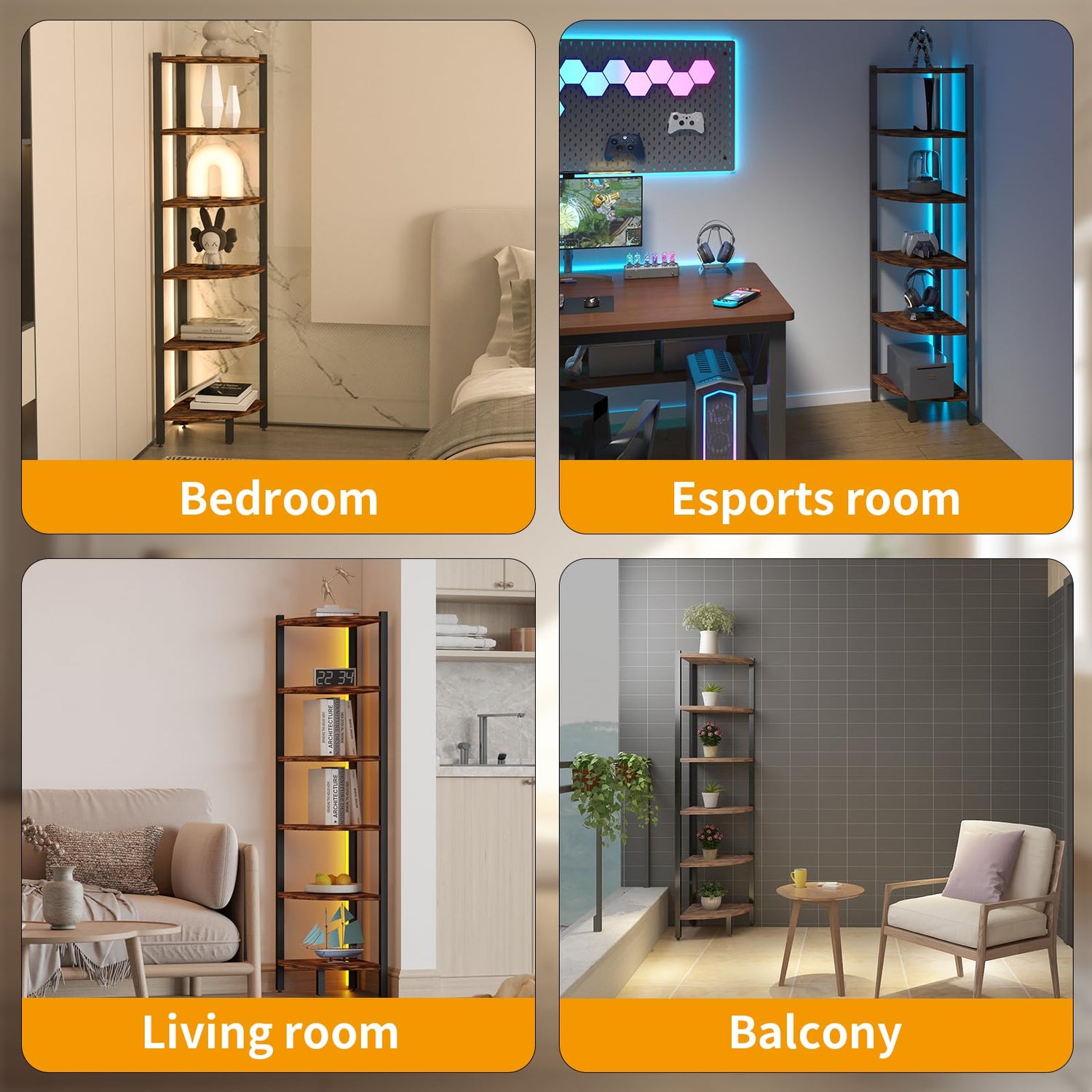 • Save Space: 90-degree right-angle design corner shelf, maximizes unused corner space in any room—living room, bedroom, kitchen, or office—by providing both practical storage and unique display capabilities, allowing you to showcase decorations, photos, plants, and more while enhancing the aesthetics and functionality of your home.