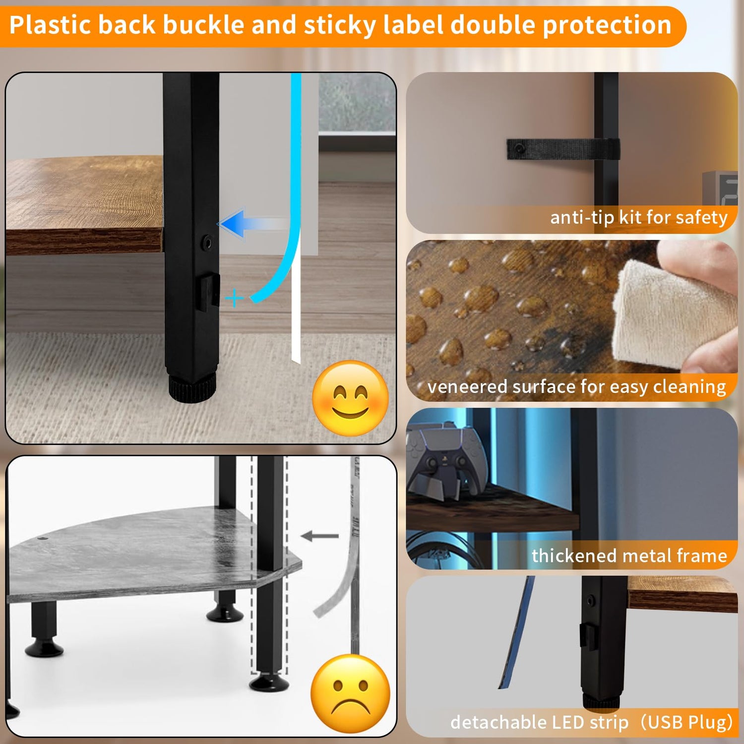 • Sturdy & Stable: Crafted from high-grade MDF board and sturdy steel, this corner shelving unit ensures durability and stability, with each shelf capable of holding up to 22 lbs and an anti-tip kit provided for added safety; adjustable plastic feet protect floors from scratches and allow for use on uneven surfaces, making it a reliable and long-lasting storage solution.
