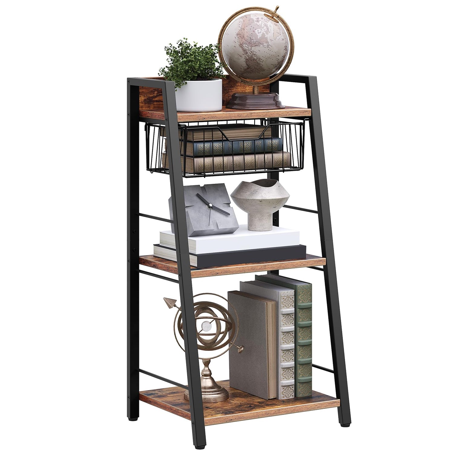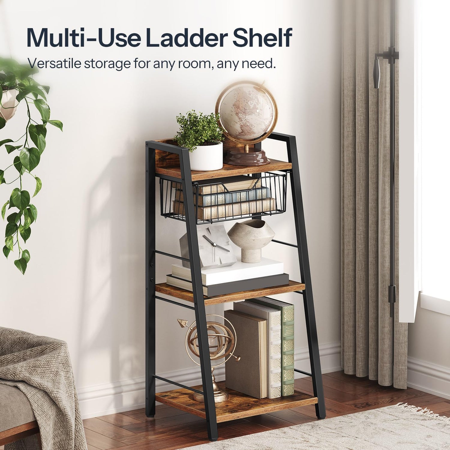 - Space-Efficient and High-Capacity: Measuring 14.6"L x 11.8"W x 31.1"H, this ladder shelf maximizes vertical space, minimizing footprint. With a detachable mesh basket, it offers ample storage for small spaces, transforming clutter into order