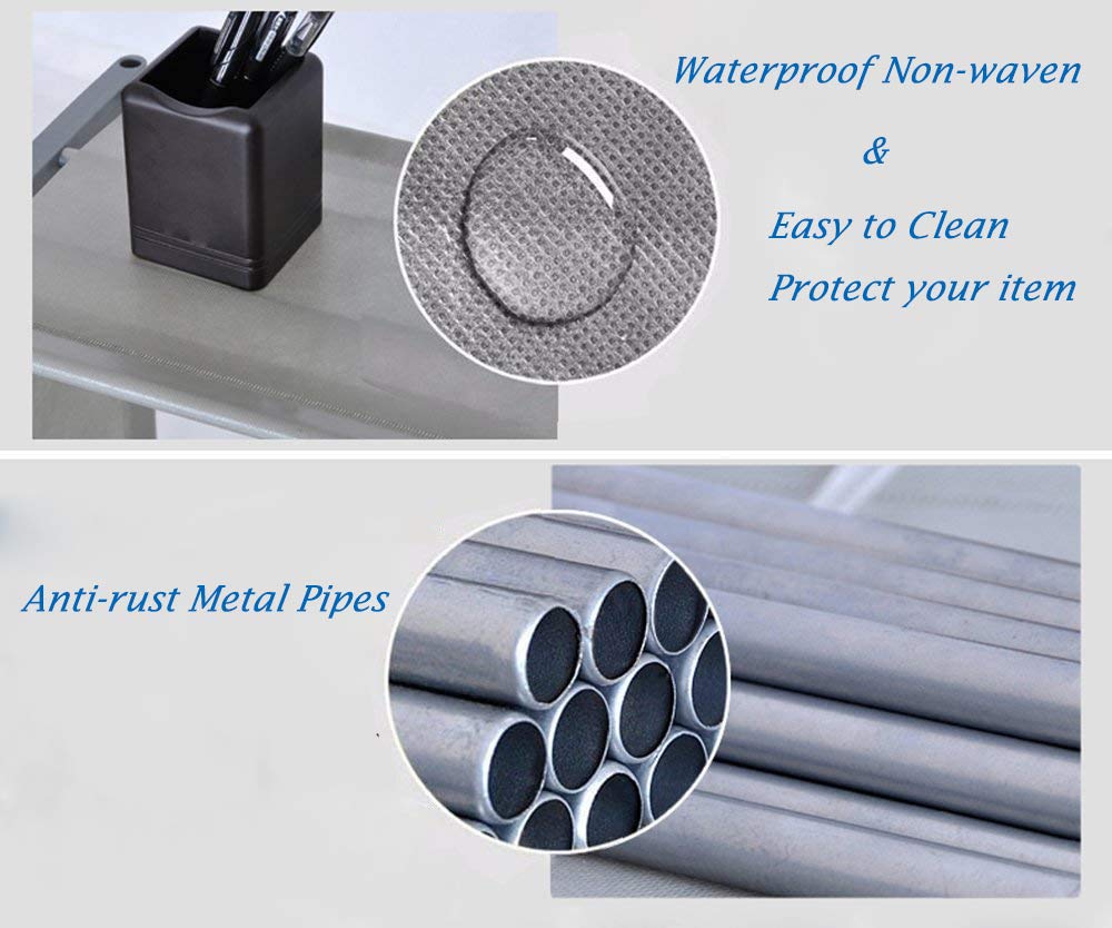 • STURDY & DURABLE - Constructed from steel tube, strengthed PP plastic connectors and water-proof non-woven fabric shelf. Stable, eco-friendly, odorless and very easy to clean.