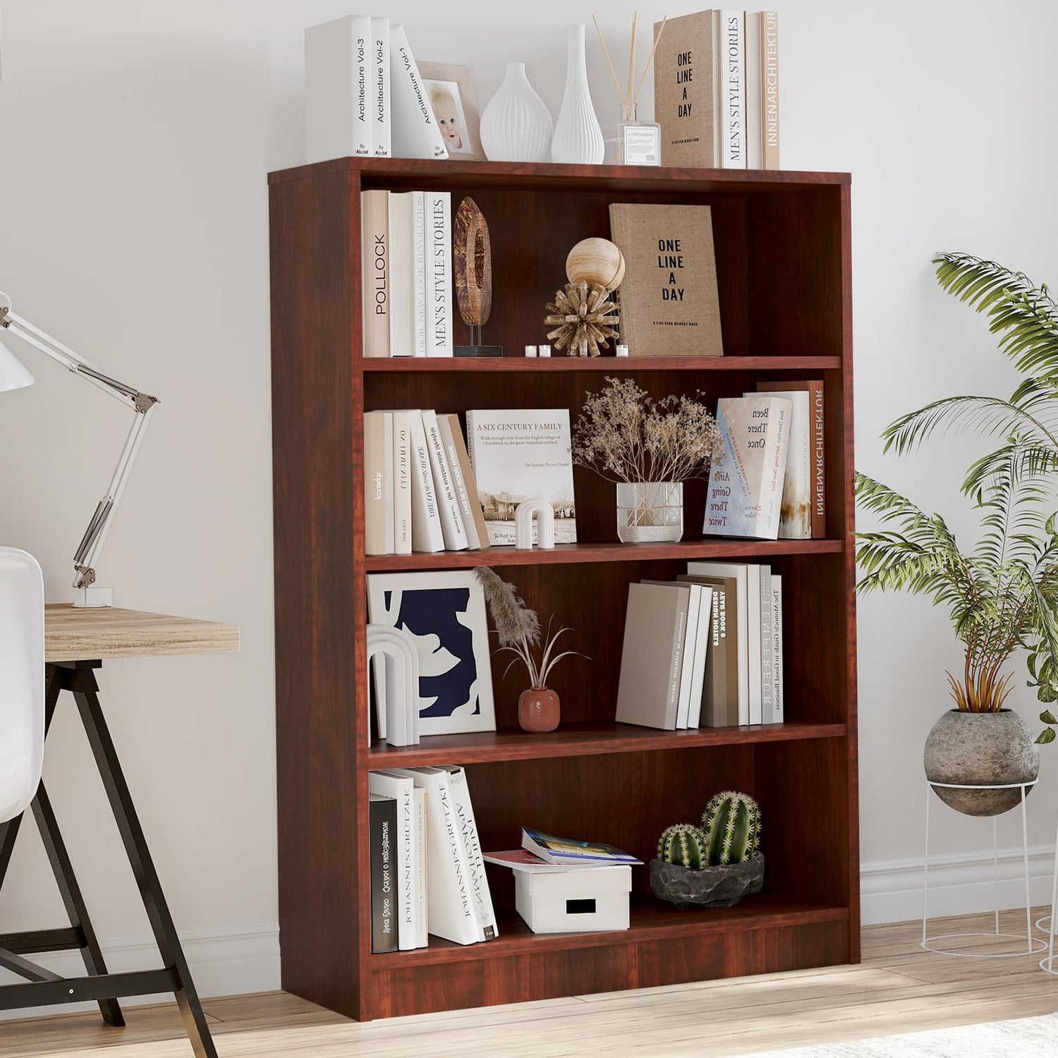 i-VTIES Bookcase Adjustable Storage Shelves,48-Inch Bookshelf,4-Tier Modern Wood Bookcase for Bedroom, Office, Living Room & Library(Cherry)