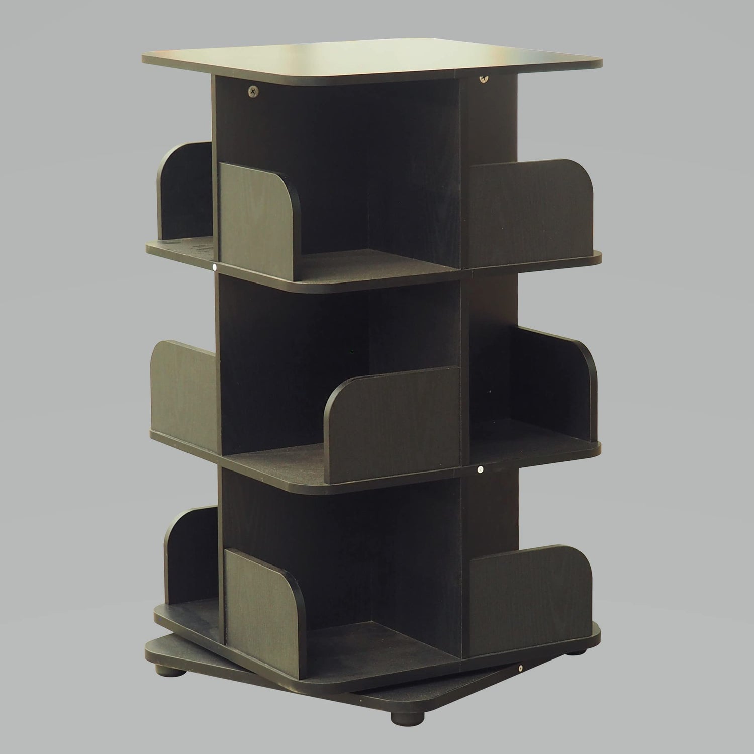 Kings Brand Furniture - Stylish Black 3-Tier Revolving Bookcase and Media Storage Unit