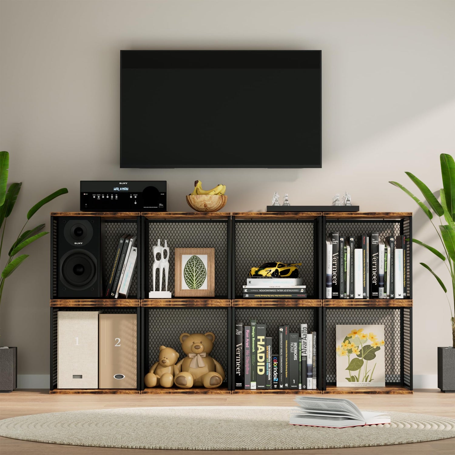 Ksuefao 2 Cube Storage Organizer, Small Bookshelves, DIY Variable Stackable Wooden & Metal Cubes Shelves for Desktop, Bedroom, Living Room, Black Brown