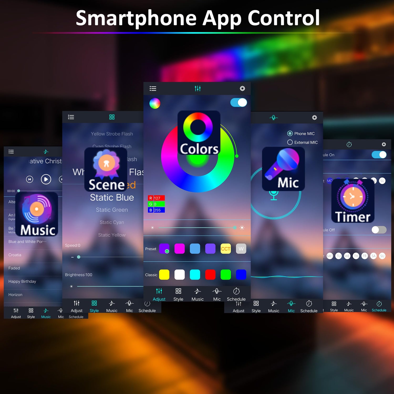• Dual Control: Enjoy dual control with our convenient App or 40 keys IR remote. Easily turn on/off the lights, change 16 million colors, adjust brightness, choose dynamic modes, activate music and mic modes, set timers, and benefit from the memory function.