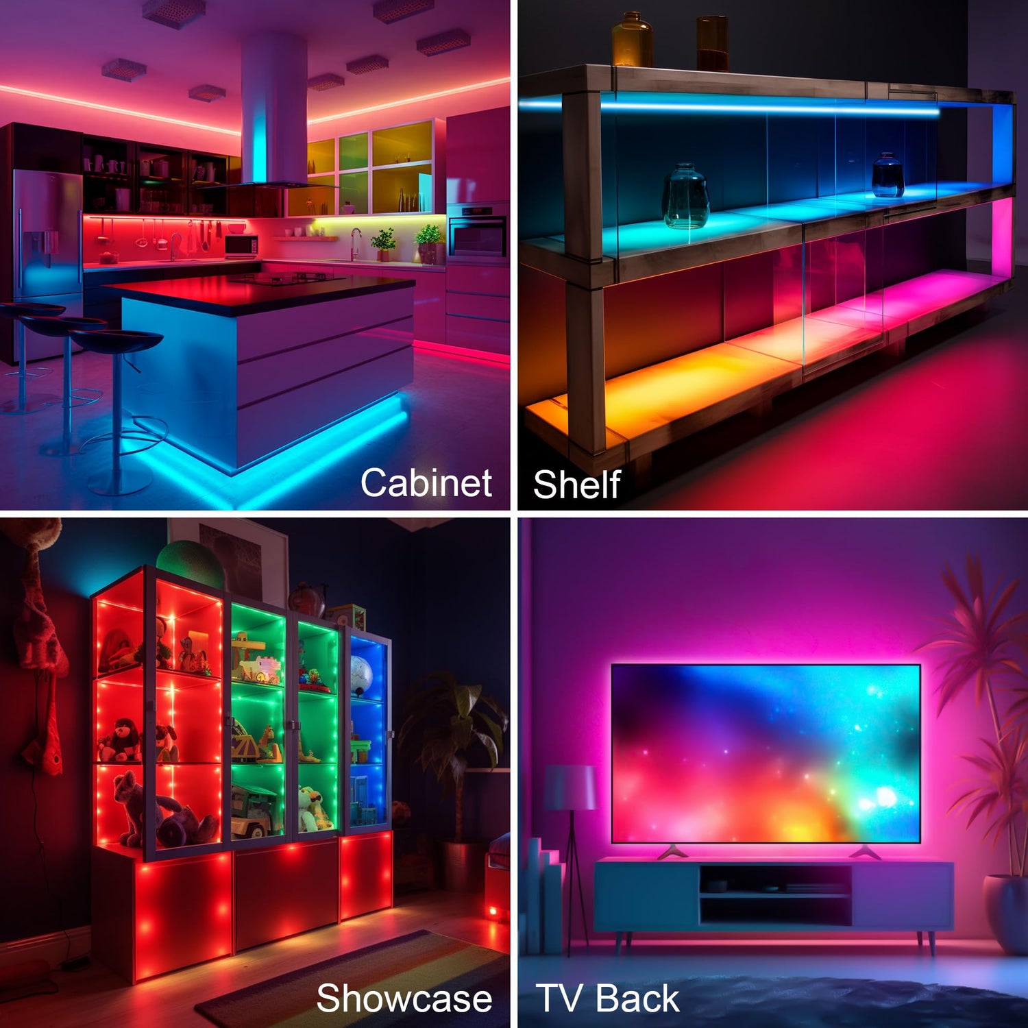 • DIY RGB Under Cabinet Lights: Transform your kitchen with our DIY colorful Under Cabinet Lighting. Perfect for cabinets, closets, desks, TVs, bookshelves, beds, wardrobes, and display cases. Millions of colors to choose from to match your mood.