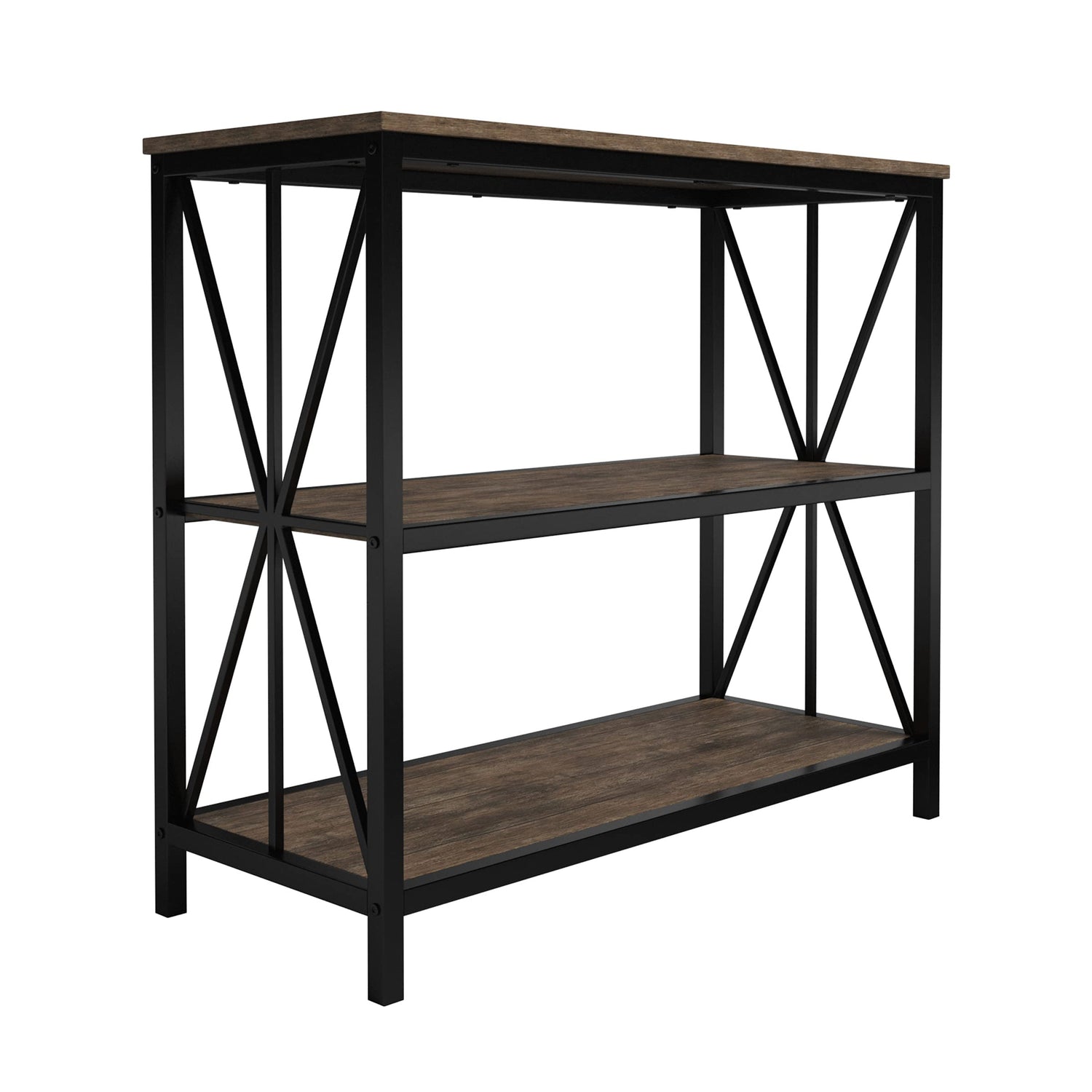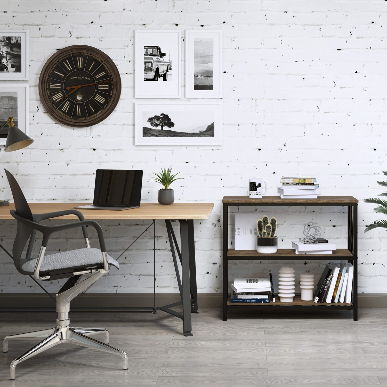 Lavish Home 3-Tier Industrial Bookshelf - Freestanding Open Bookcase for Home or Office Organization and Storage - Book Organizer (Brown Woodgrain)