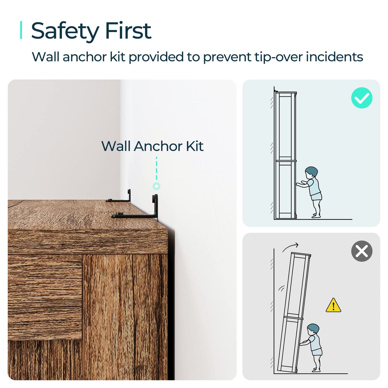 Safety is paramount, and this bookcase is equipped with a wall anchor kit to prevent tip-over incidents. Additionally, a stabilising device on the back of the bookcase enhances its stability and durability, granting you peace of mind in your home.