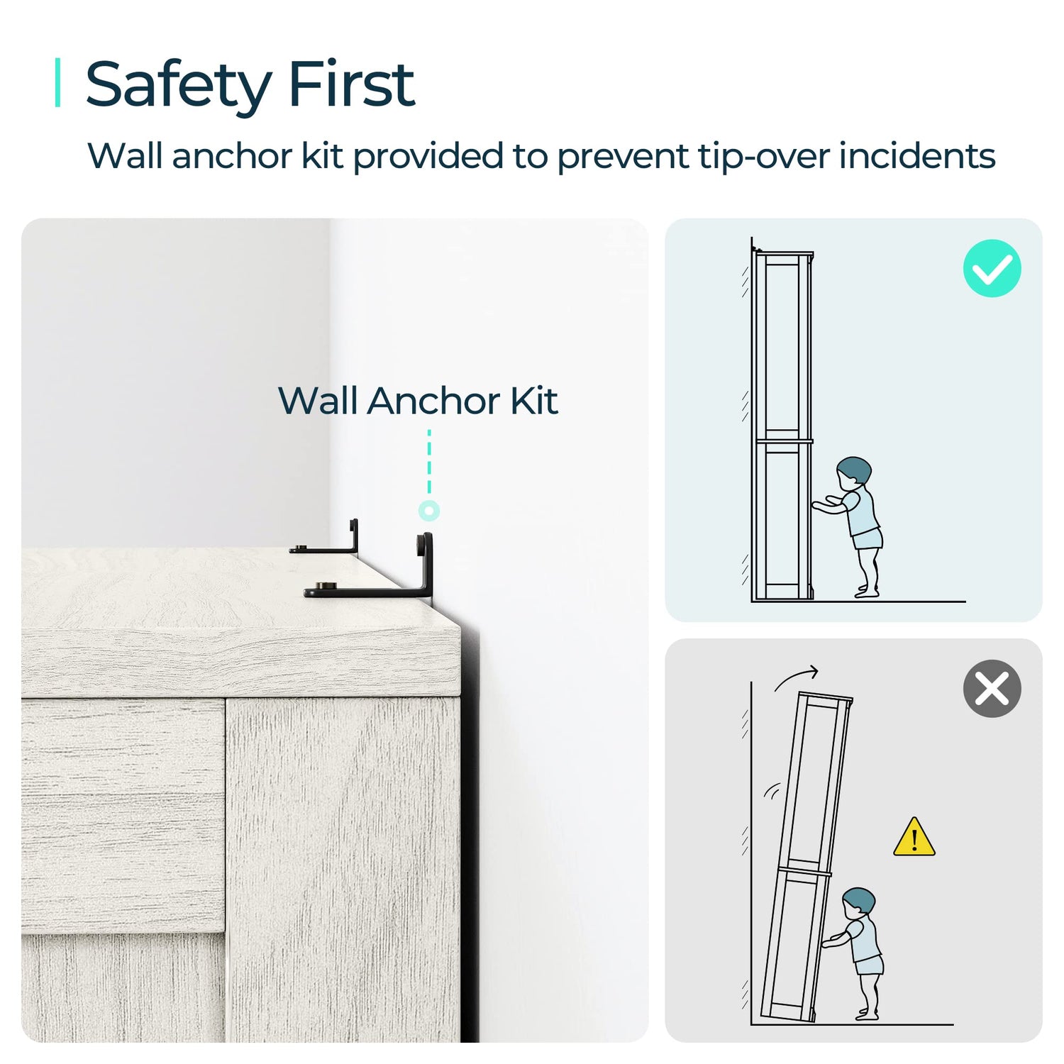 • SAFETY FIRST - Wall anchor kit provided to prevent tip-over incidents. The back of the bookcases are also equipped with a stabilizing device, which makes the book shelf more stable and durable.