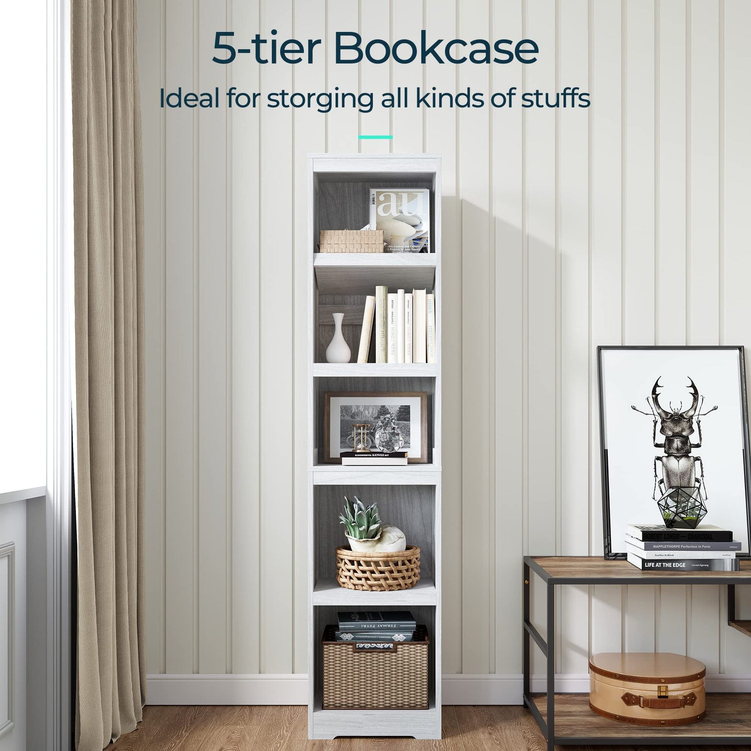 LINSY HOME 5-Shelf Bookcase, Narrow Bookshelves Floor Standing Display Storage Shelves 68 in Tall Bookcase Home Decor Furniture for Home Office, Living Room, Bed Room - White Oak