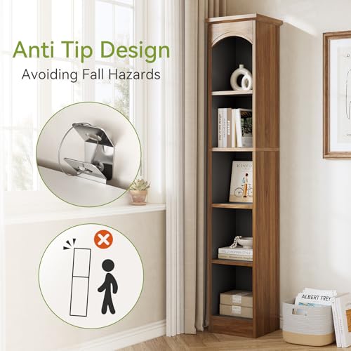- Tall & Narrow Design: Measuring 12.59" L x 11.02" W x 70.86" H, the freestanding bookcase features a narrow design that fully utilizes space, providing ample storage while occupying less floor area. The included anti-tip kit can prevent potential safety hazards