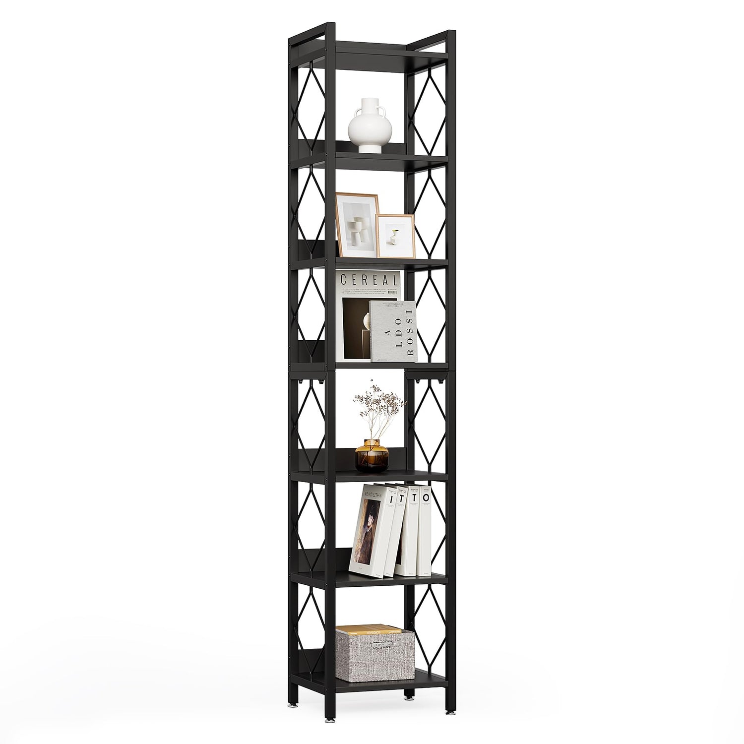 LITTLE TREE Corner Book Shelf, 7-Tier Tall Bookcase, 78" Display Shelves with Sturdy Metal Frame for Living Room, Modern Narrow Standing Bookshelves, Black Office Shelf for Small Spaces, Bedroom