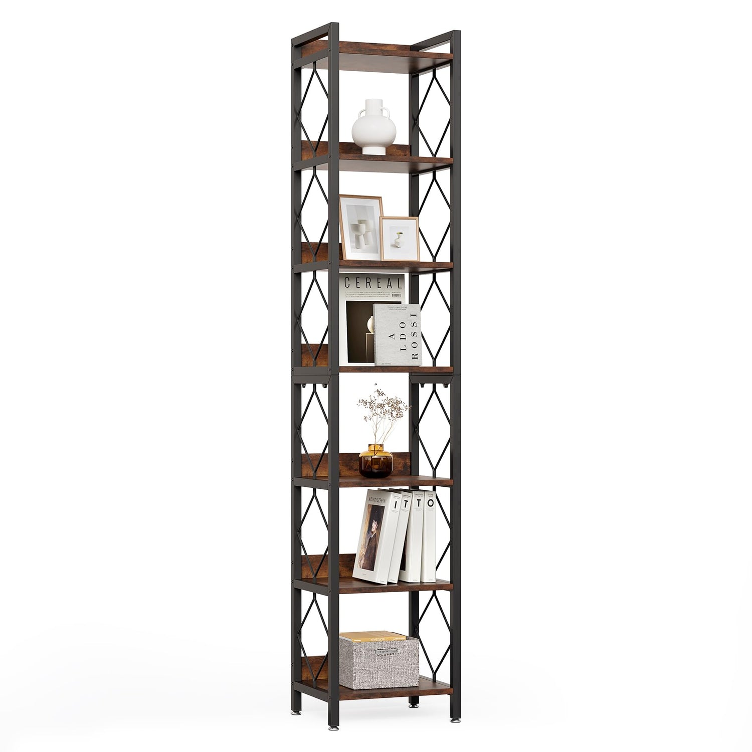 - Minimalist Aesthetic: Featuring a sleek brown finish, this narrow bookcase adds a touch of modern elegance to any room. Its skinny design is ideal for space saving in smaller rooms or offices while enhancing the visual appeal of your interior design