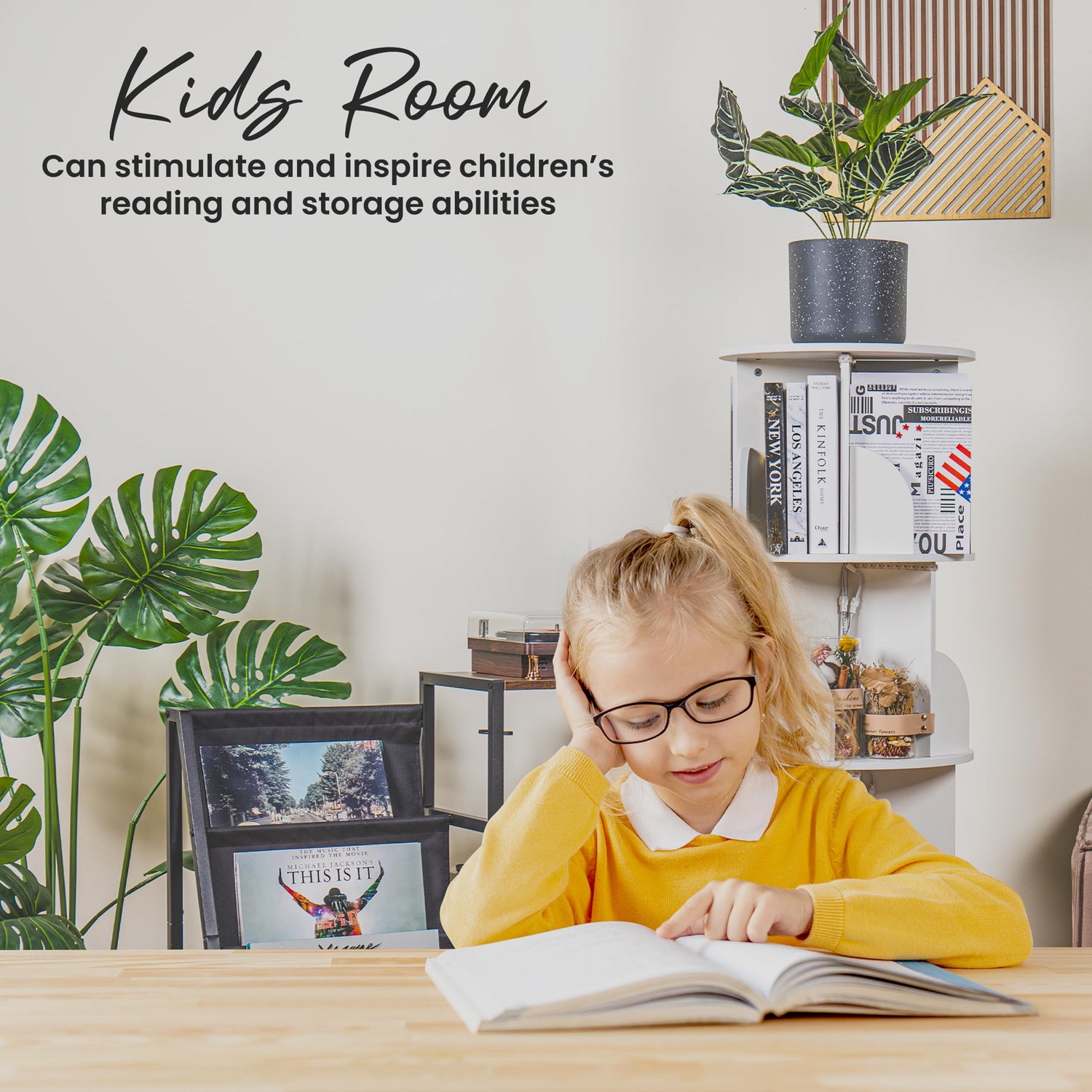 Details: ⚫Rotating Book Shelf with LED Lights Illuminate Your Space, Organize with Grace ⚫Transform your living space with our rotating bookshelf kids, an innovative storage solution that combines elegance with practicality. This modern 4-tier round bookshelf is designed to rotate 360° with a smooth rotation, providing easy access to your favorite books and decor items from any angle and can hold up to 100 pounds. ⚫Stylish and Functional ⚫Perfect for any room, this cool bookshelf features integrated RGB LED lights that can be controlled via remote. Choose from a variety of colors and brightness levels to match your mood or enhance your reading experience. Its sleek design and black and white color options make it a versatile addition to your home decor. ⚫Ideal for Kids and Adults ⚫Whether it’s used in a child’s bedroom to inspire reading habits or in an office to keep your books organized, it is both functional and aesthetically pleasing. Its sturdy construction and waterproof surface ensure durability, while the smooth, safe edges make it suitable for kids’ rooms. ⚫Effortless Assembly ⚫Setting up your new rotating shelf is a breeze with our comprehensive assembly guide and included tools. Enjoy a clutter-free, beautifully organized space in no time. Specifications: Dimensions: 51.2 x 15.7 x 15.7 inches Weight Capacity: 60-100 books Material: Thickened wood boards Color Options: Black, White LED Control: Remote included (20 feet range) Order Now and Enhance Your Space Upgrade your home organization with our 360 rotating bookshelf. Click ‘Add to Cart’ and enjoy a stylish, well-organized, and illuminated space. ⚫Buy Now on Amazon -Looking for a black corner bookshelf? This versatile and stylish design fits perfectly into any corner, maximizing your space while adding a touch of modern elegance.