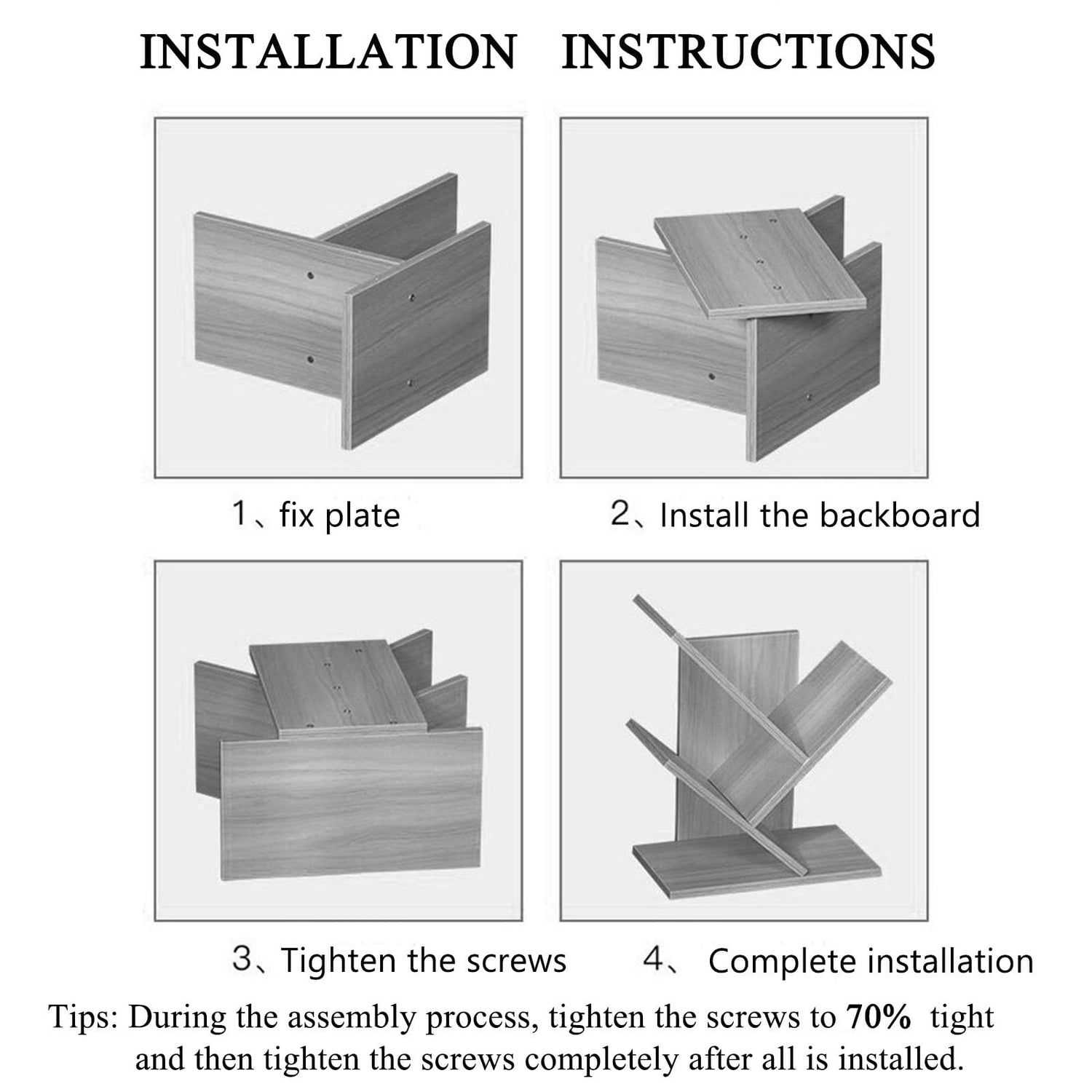 - [Easy to Install and Use] The bookshelf is easy to install with the installation tutorial attached inside. First of all, the boards are fixed with screws after their respective positions are placed; then just install and tighten the back boards. Need to pay attention to the assembly process of the screws screwed to 70% tight, to be all installed and then tighten the screws completely.