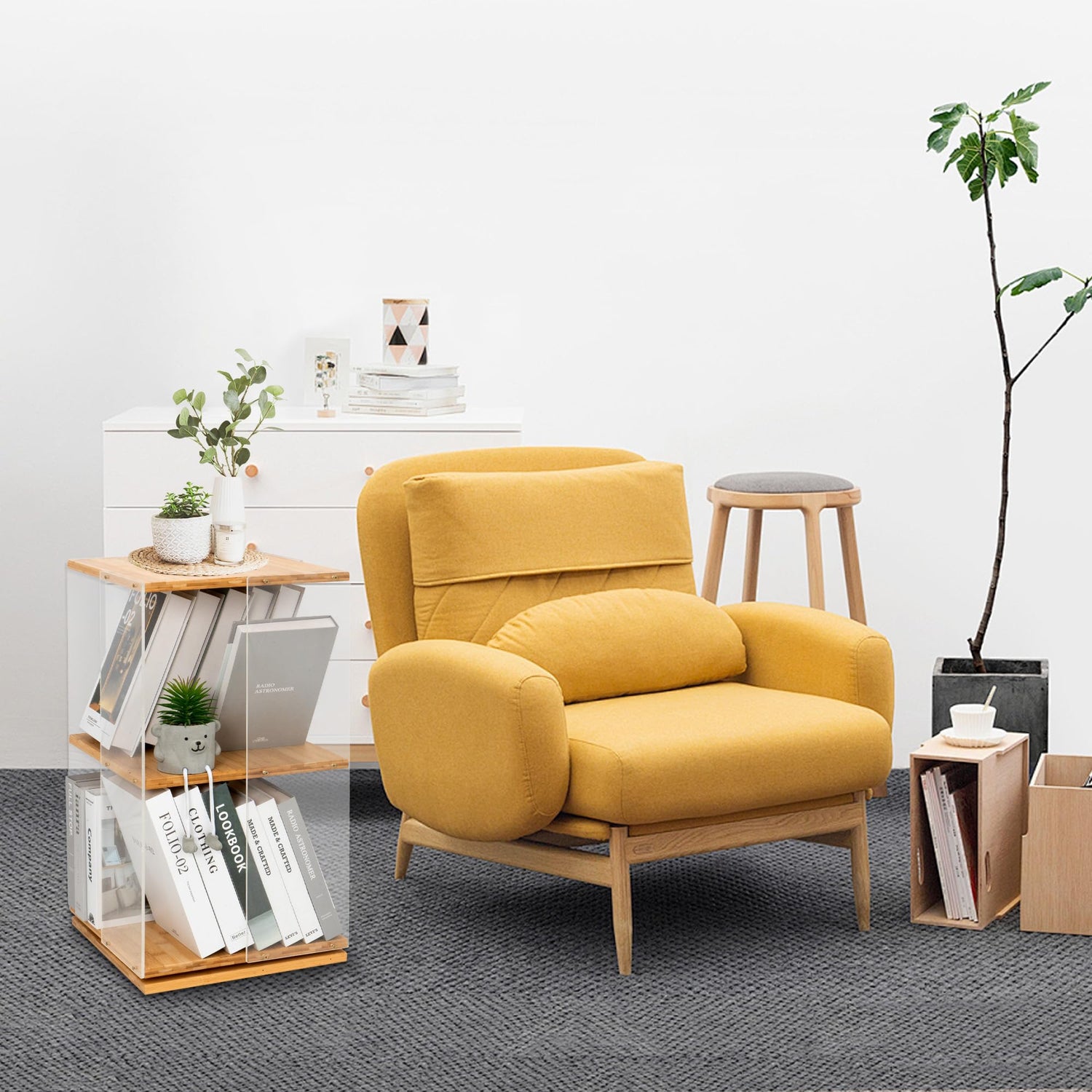 Crafted from natural bamboo and featuring robust acrylic sides, this rotating bookshelf promises exceptional stability and durability. The protective film can be easily removed, allowing the bookshelf to shine in its full glory.