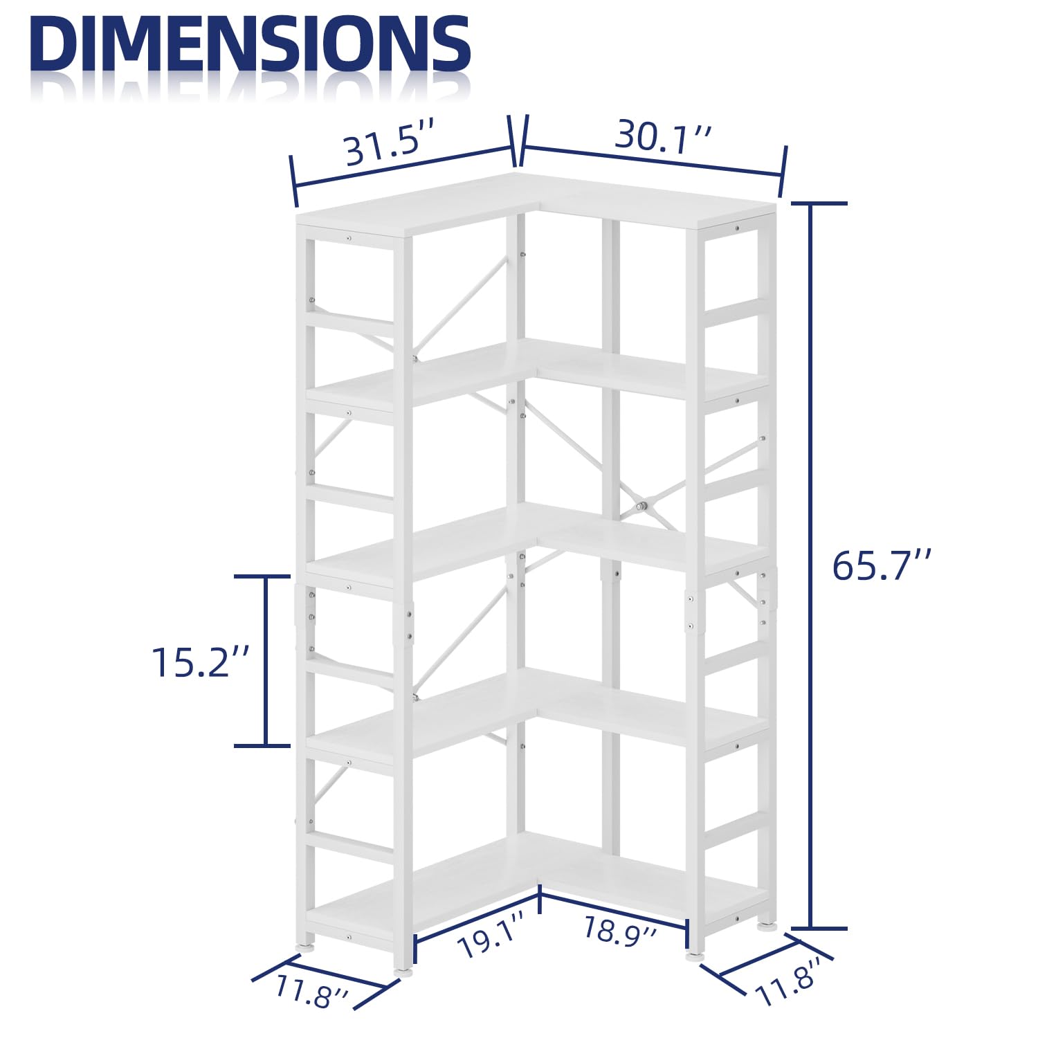 NUMENN 5 Tier Corner Bookshelf, Modern Corner Bookcase, Large Open Shelf Bookcase, Tall Bookshelves Storage Display Rack for Bedroom, Living Room and Home Office, White