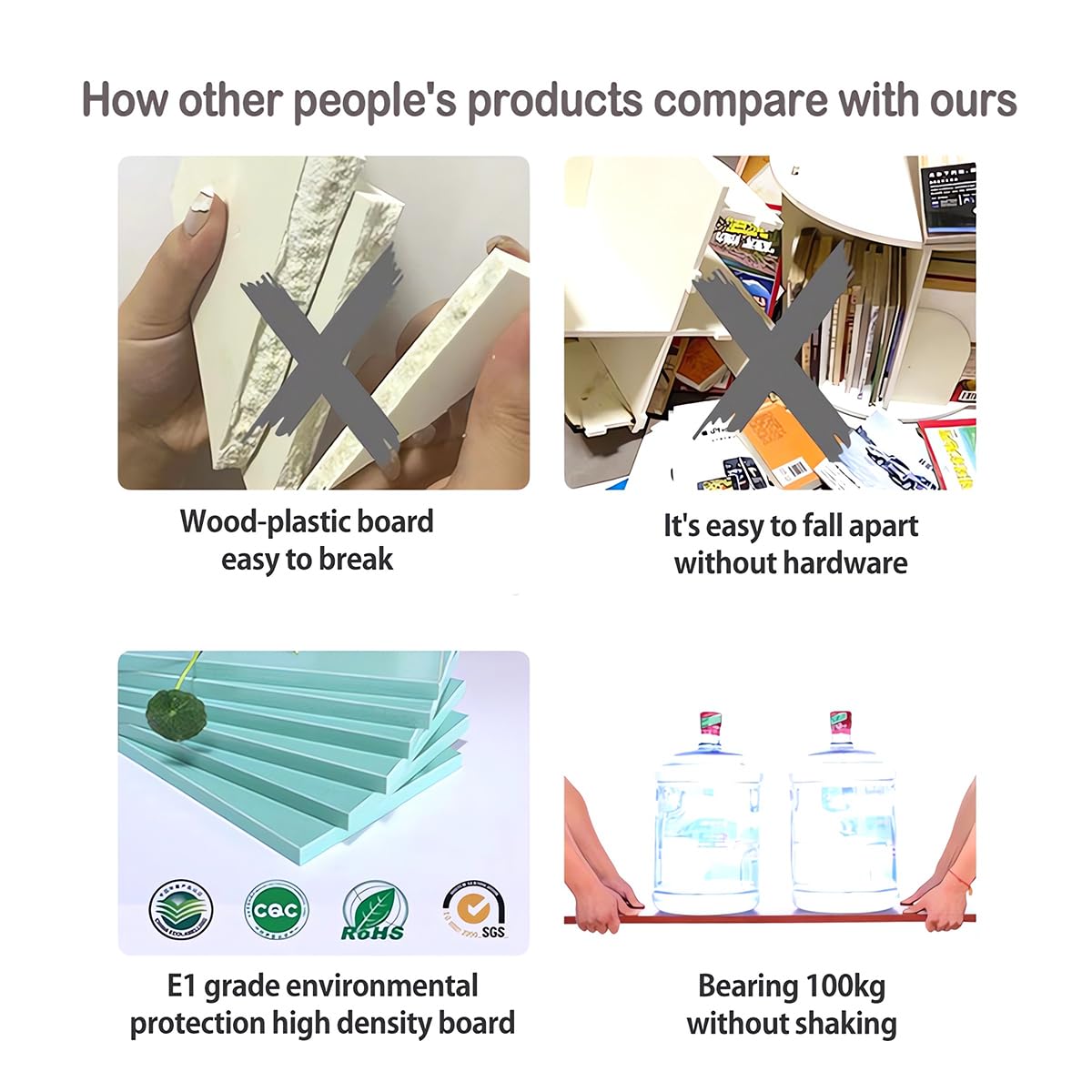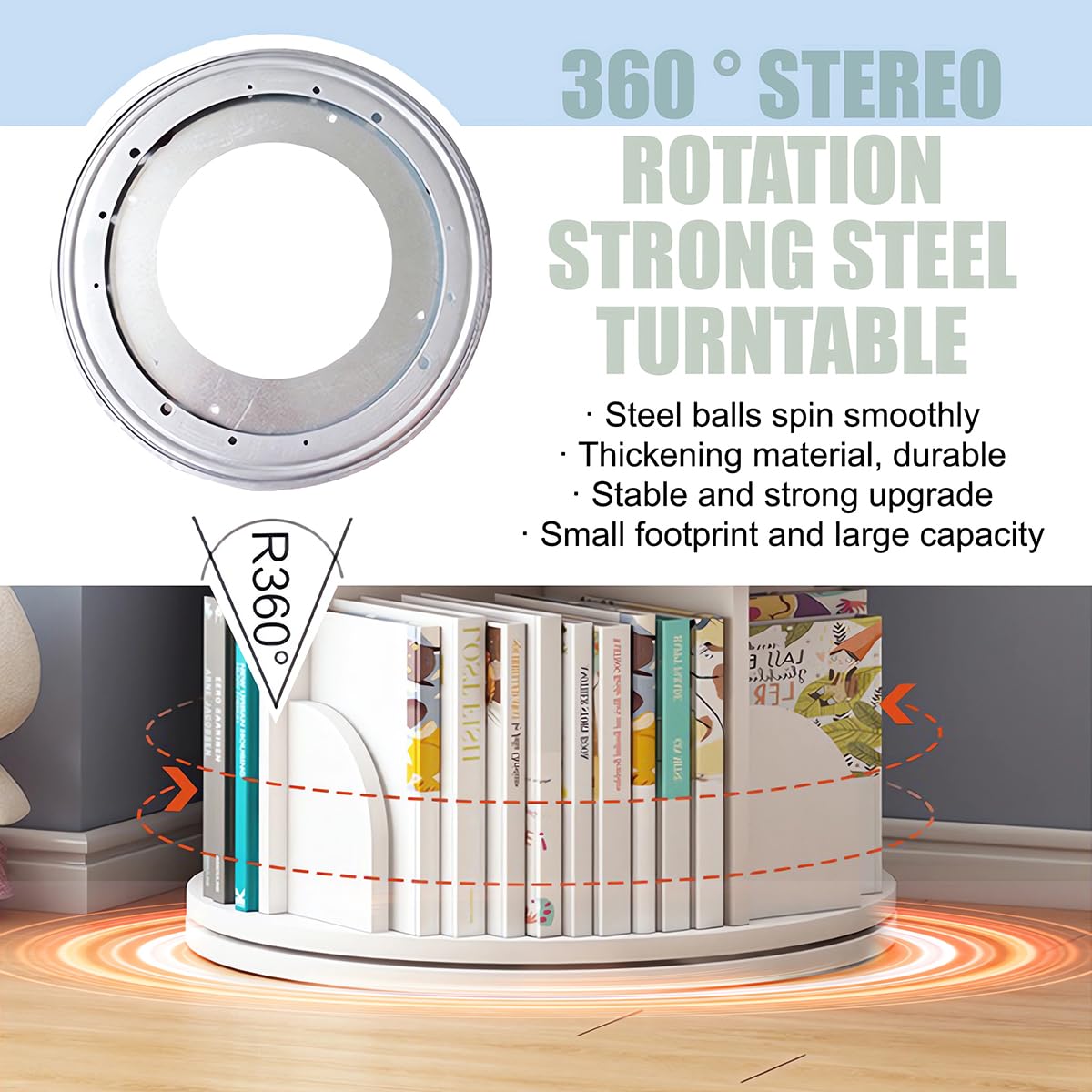- **360° Free Rotation**: Experience unparalleled convenience with the ability to spin the bookshelf 360 degrees. The integrated rotating chassis, crafted from durable steel ball bearings, ensures smooth and silent movement, allowing you to effortlessly browse your collection.