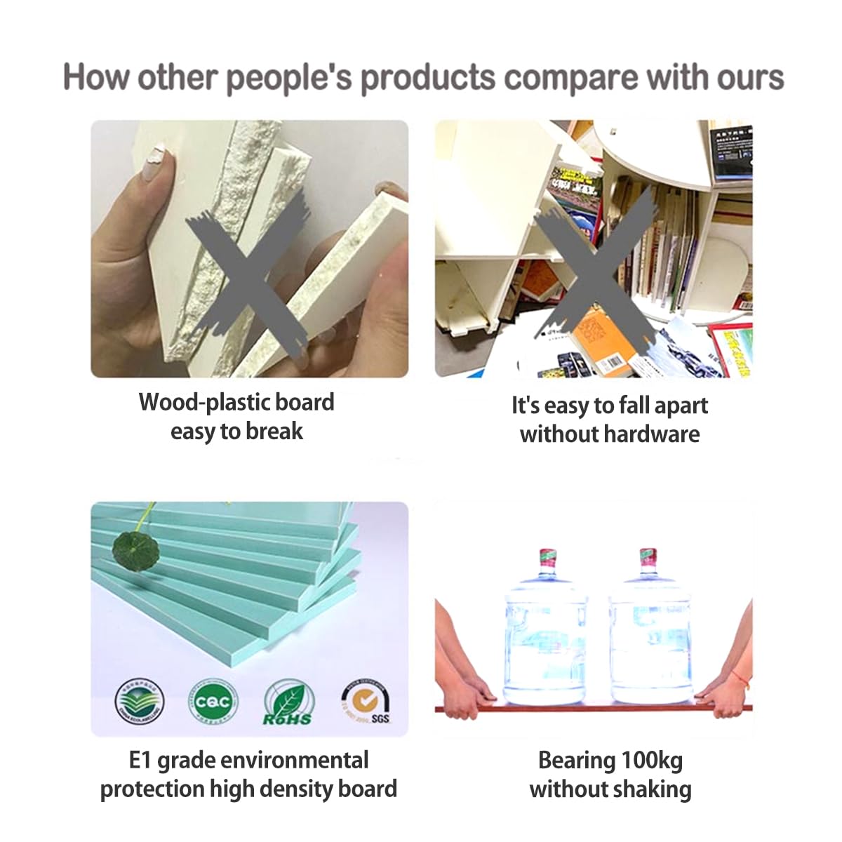 One of the standout features of this bookshelf is its 360-degree free rotation. Equipped with a rotating chassis of steel ball bearings, it ensures smooth and silent movement, allowing you to access your favourite books and items from any angle.