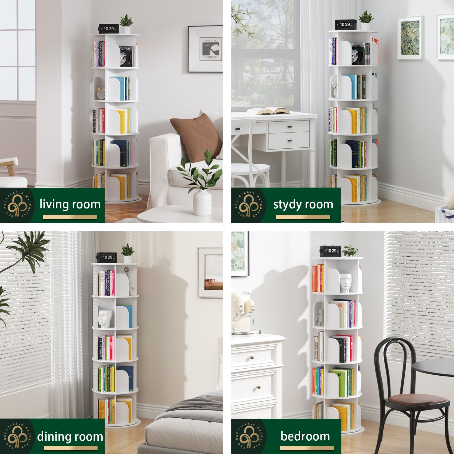 - Rotating Bookshelf Tower 5 Tier,Spinning Bookcase, Revolving 360 Book Shelf Narrow Tall Bookcase, Vertical Turning Round storage Bookshelf ,Book Shelf Organizer for Bedroom, Living Room, White