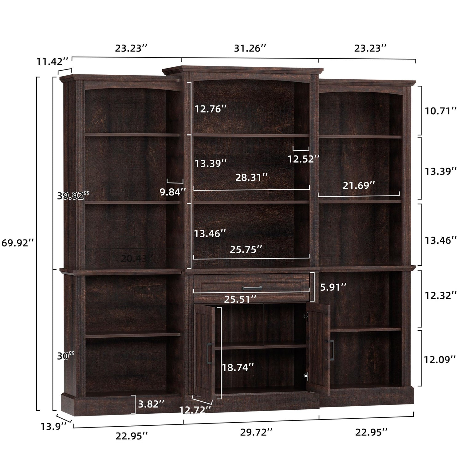 • Farmhouse Bookshelf: The bookshelf measures 13.9"D x 77.72"W x 70"H. Designed to double as both a bookcase and a storage cabinet. The unique design enhance the texture and boosting visual appeal. Easily incorporated into a variety of decorating styles.