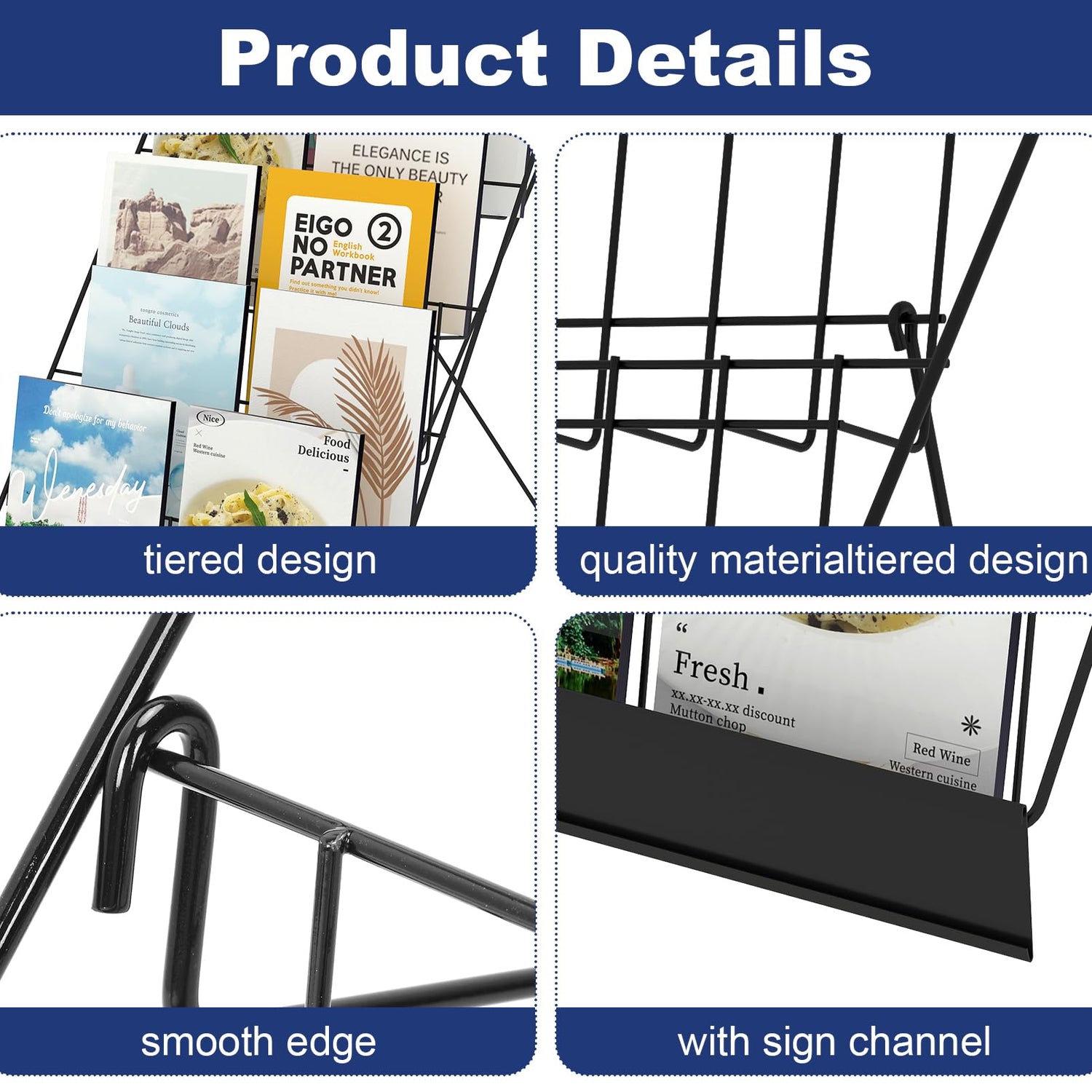• High Quality Material:The tiered display stand made of premium metal material. It is lightweight but very sturdy,suitable to display varied sized brochures
