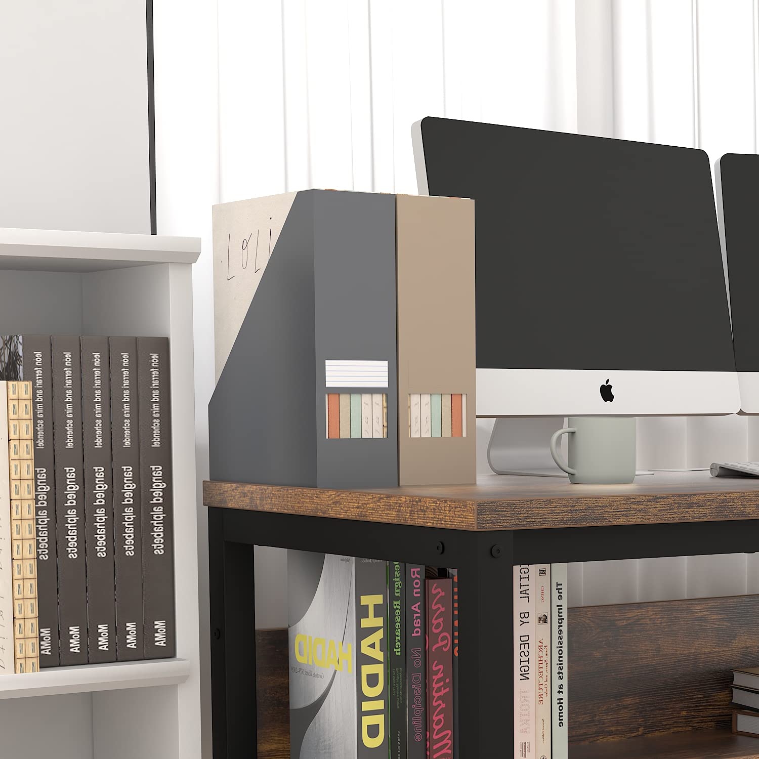 TOPSKY Rustic Brown Computer Desk with Bookshelf and Metal Cable Grommet - 55" Thick & Sturdy Design