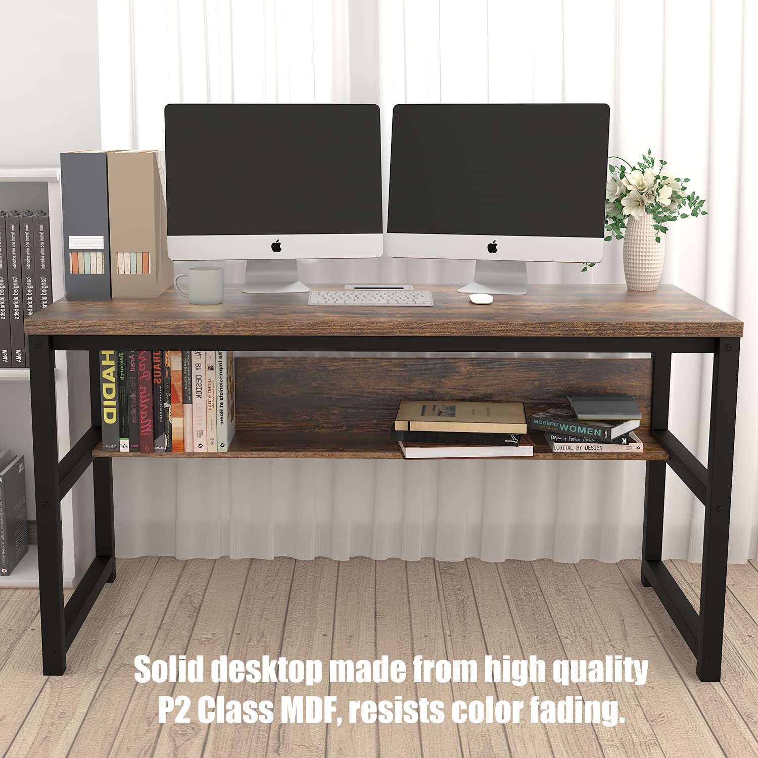 Crafted from CARB P2 Class MDF board, this desk not only boasts a waterproof and scratch-resistant surface for easy cleaning but also features a sleek, rustic brown finish that suits any office decor. Weighing 62 lb, it combines durability with a functional design.
