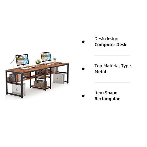 Tribesigns Rustic Brown Two-Person Double Desk with Bookshelf for Home Office
