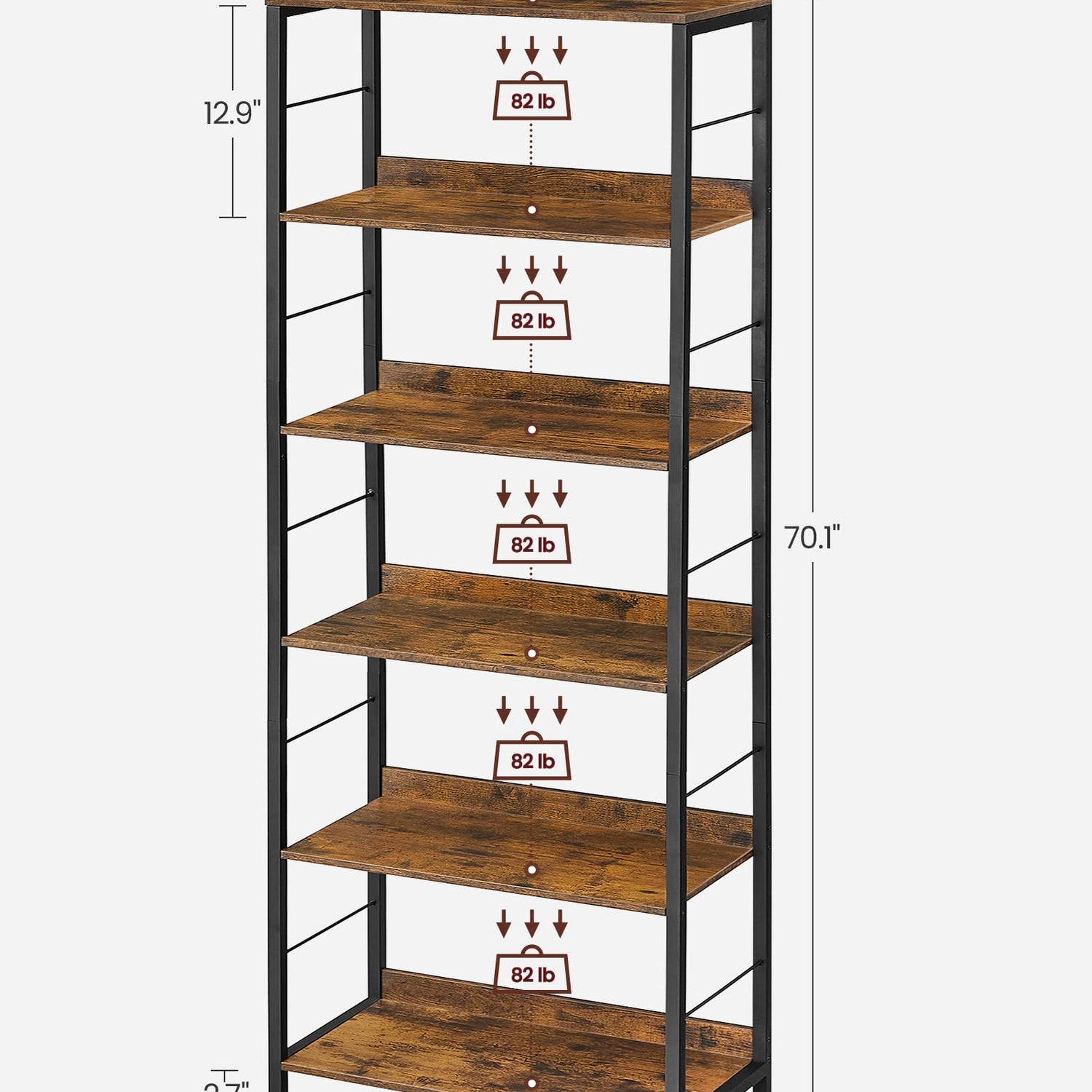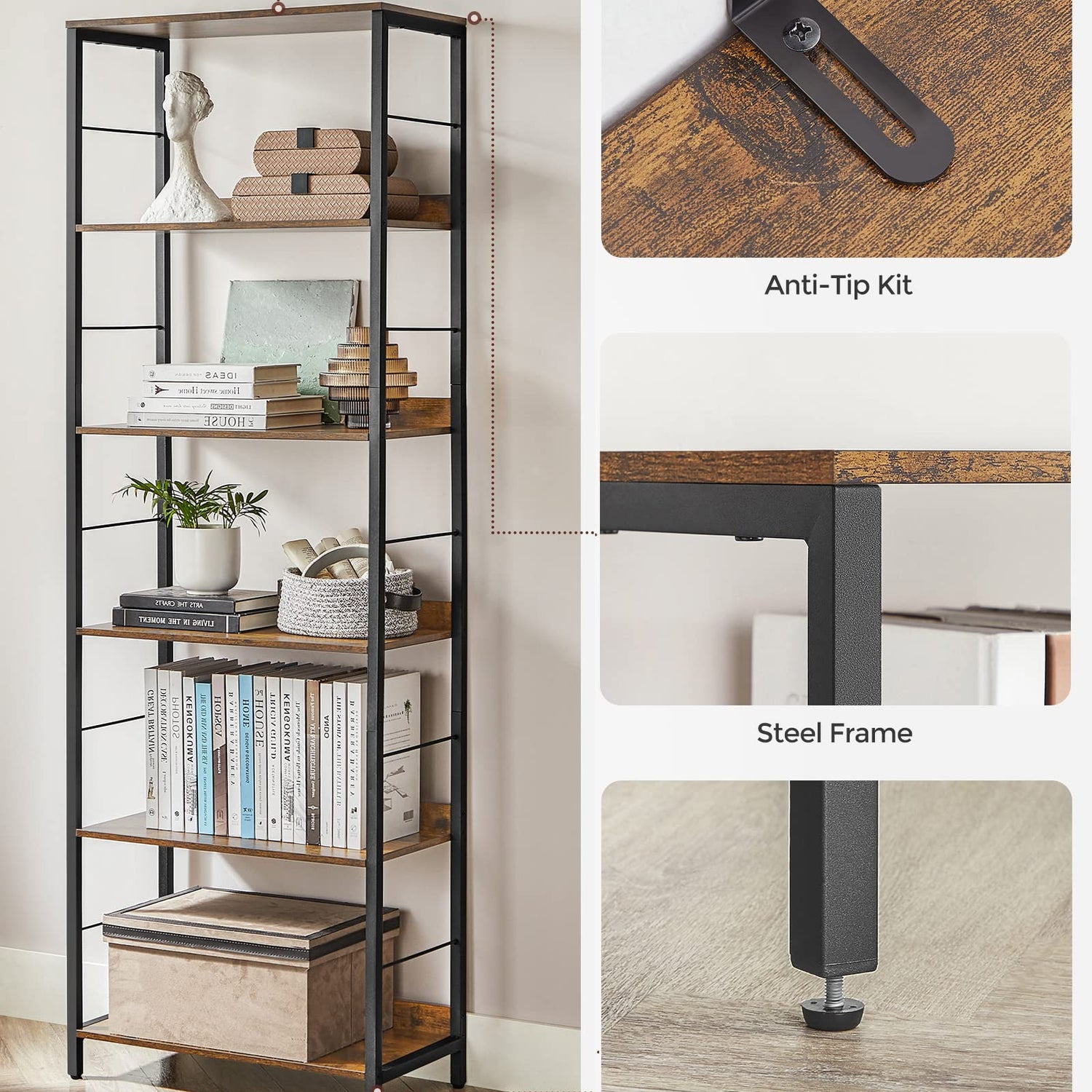 Introducing the VASAGLE Industrial 6-Tier Bookshelf, a perfect blend of style and functionality. This stunning storage unit in rustic brown and black will enhance your décor while providing ample space for your belongings.