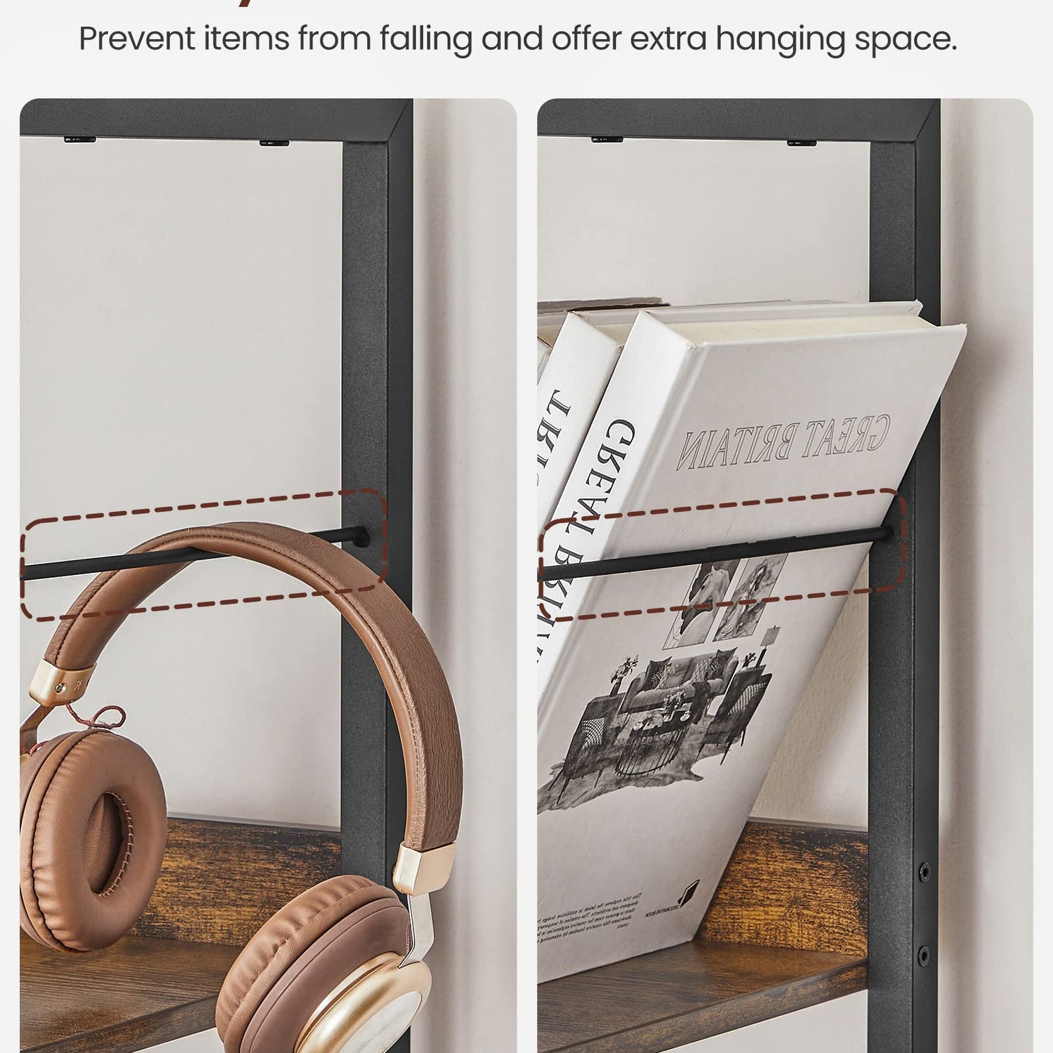 Additionally, the thoughtful design includes side bars that serve dual purposes—functioning as bookends to keep your favourite reads upright while also providing hanging rails for storing frequently used items.